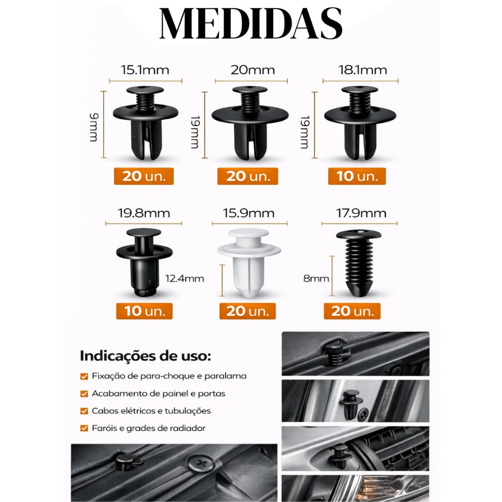 Kit Presilhas Automotivas Universal com até 1815 Unidades Fixação Carro