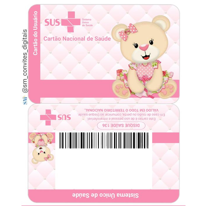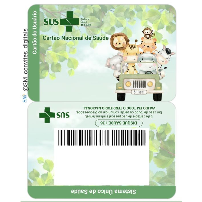 Cartão SUS PERSONALIZADO COM NOME E TEMA DESEJADO