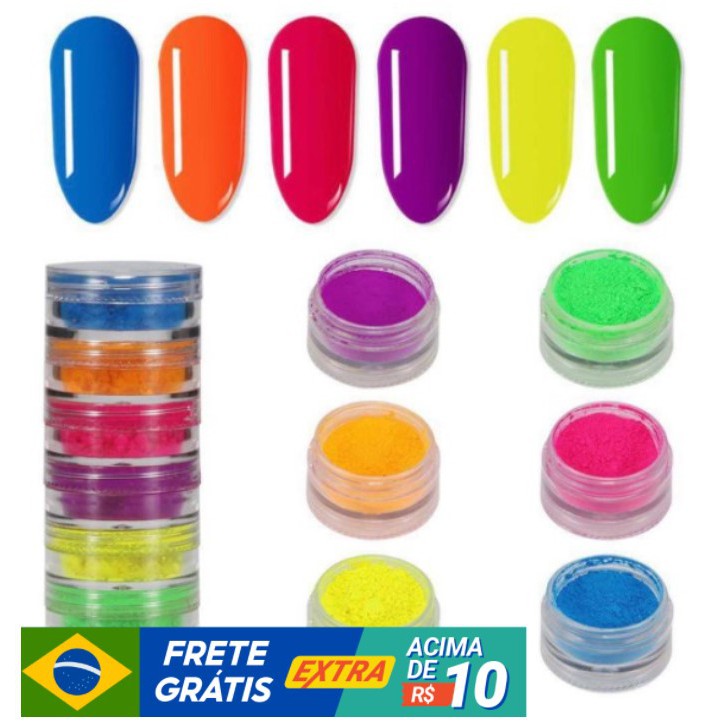 Torre Com 6 Pó Neon Florescente Unhas De Gel Maquiagem e Decoração