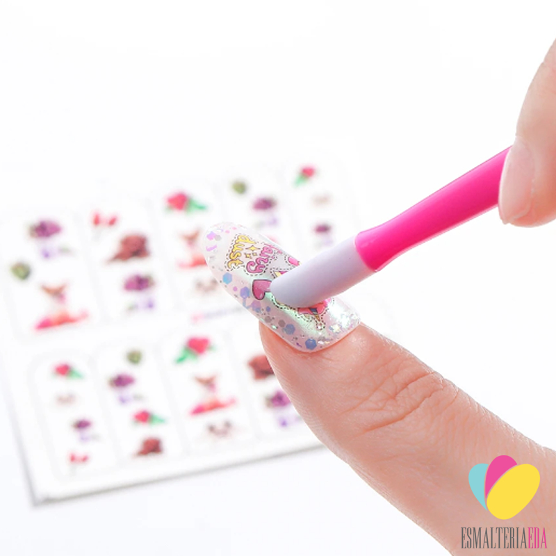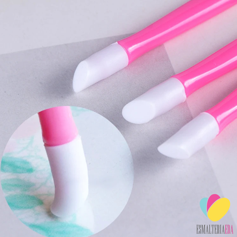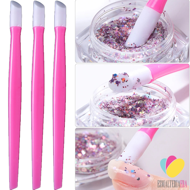 Espátula para unha multiuso com ponta de silicone para empurrar cutículas, aplicar películas e glitter