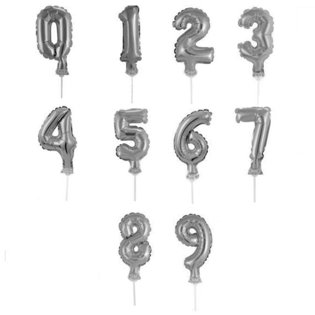 Balão topo de Bolo Metalizado Prata 14 Cm
