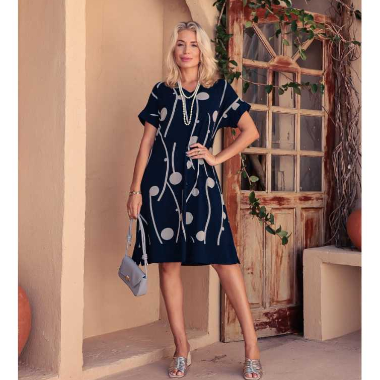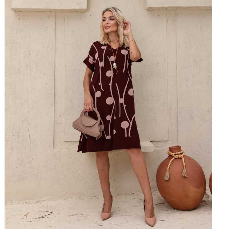 Vestido Midi Isa Manga Curta Bolsos Viscolycra Outono Soltinho