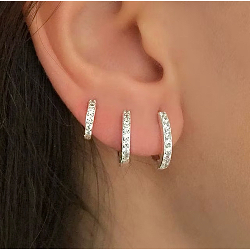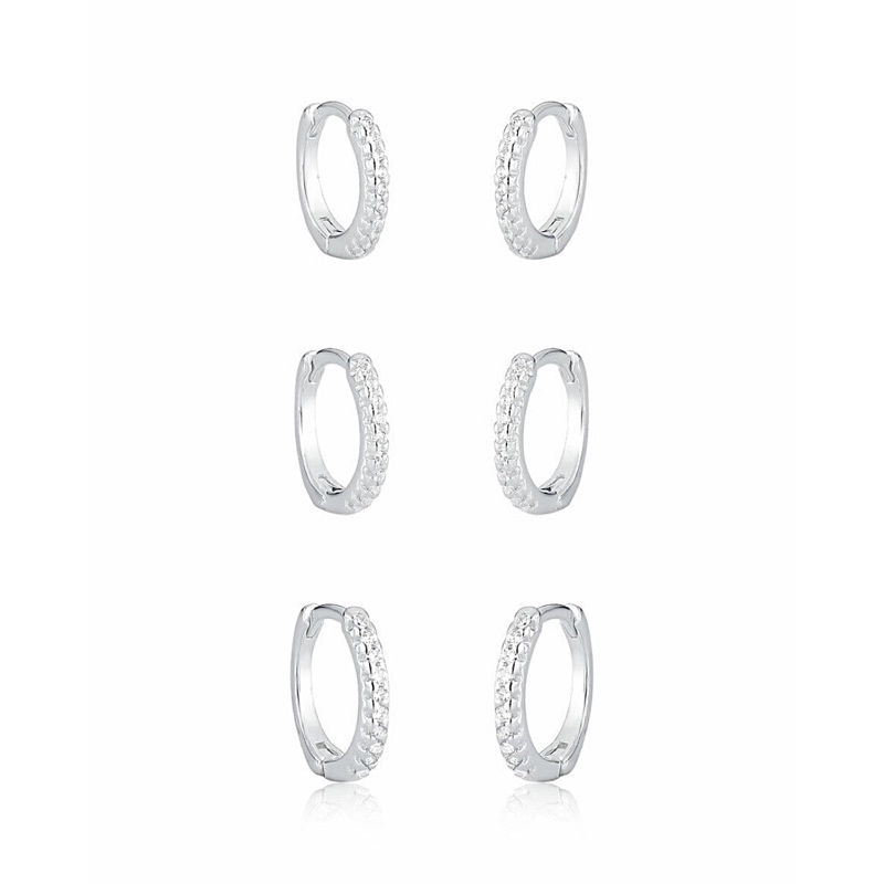 Trio de Argolinhas Cravejadas Lindas Prata 925 Garantia Kit 3 Argolinhas Femininas Cravejadas Prata 925 com Garantia