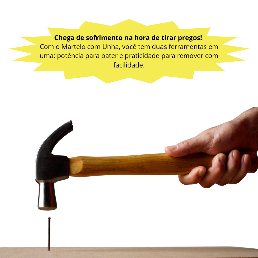 Martelo C/ Cabo Madeira 33CM Cabeça De Aço 27MM Unha Curvada Arranca Prego