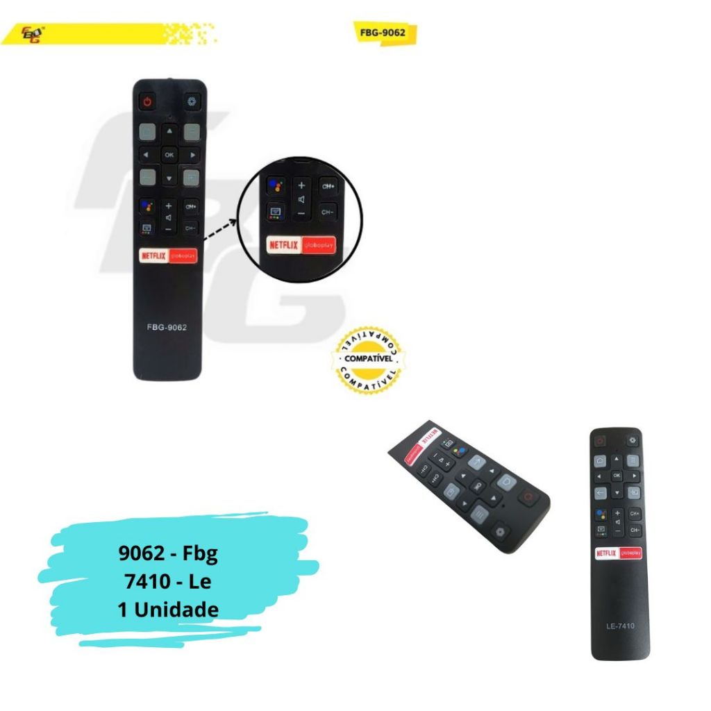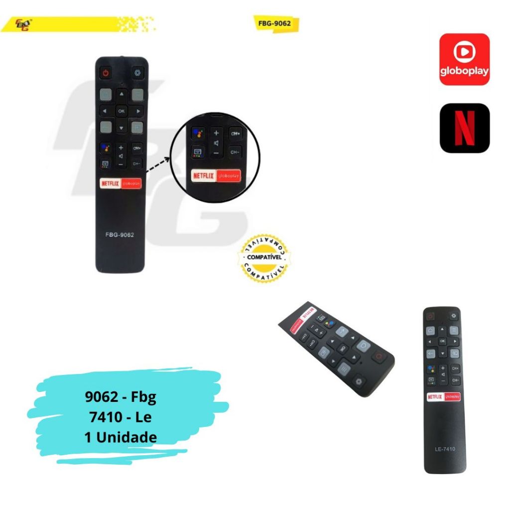 Controle Remoto Compatível TCL Smart Android Modelo FBG9062LE7410 Acesso Netflix e Globoplay | Sem Comando de Voz-NEW