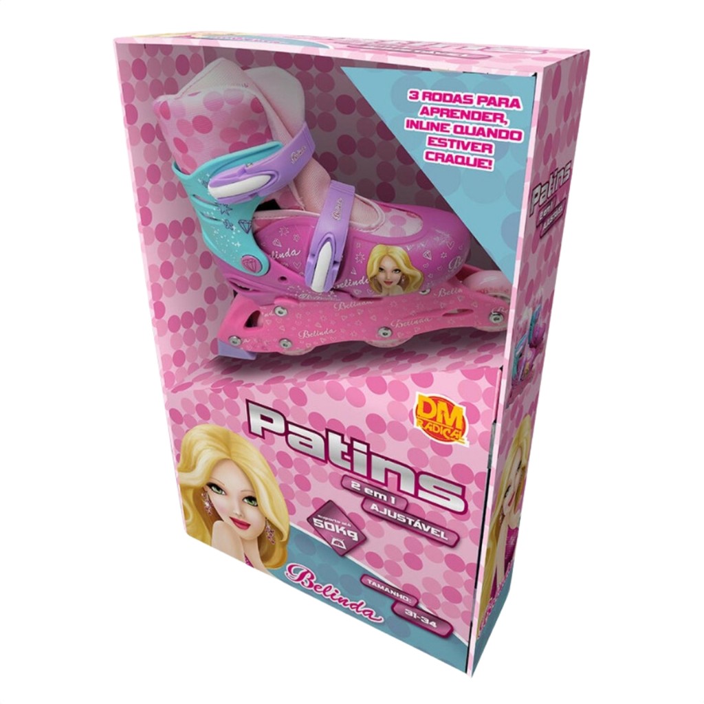 Patins Infantil Meninas Fashion Inline 2 Em 1 Tamanho Ajustavel 31-34