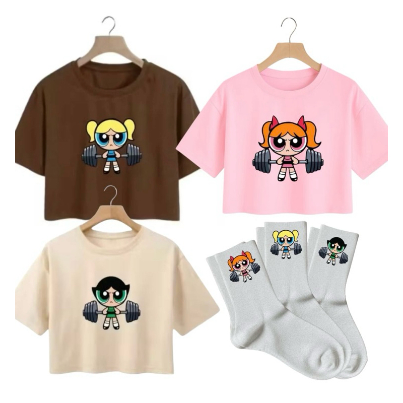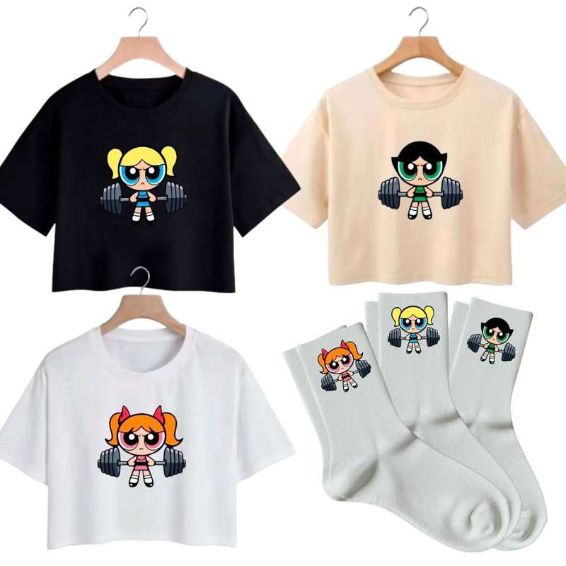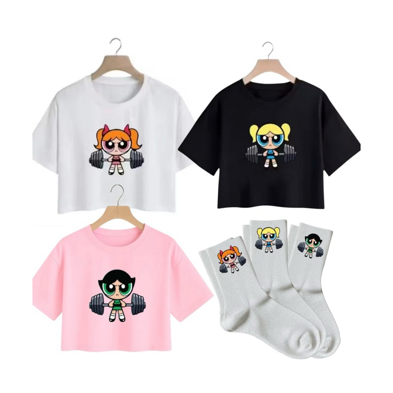 kit 3 Cropedd e 3 Meias Super Poderosas Blusinha Academia