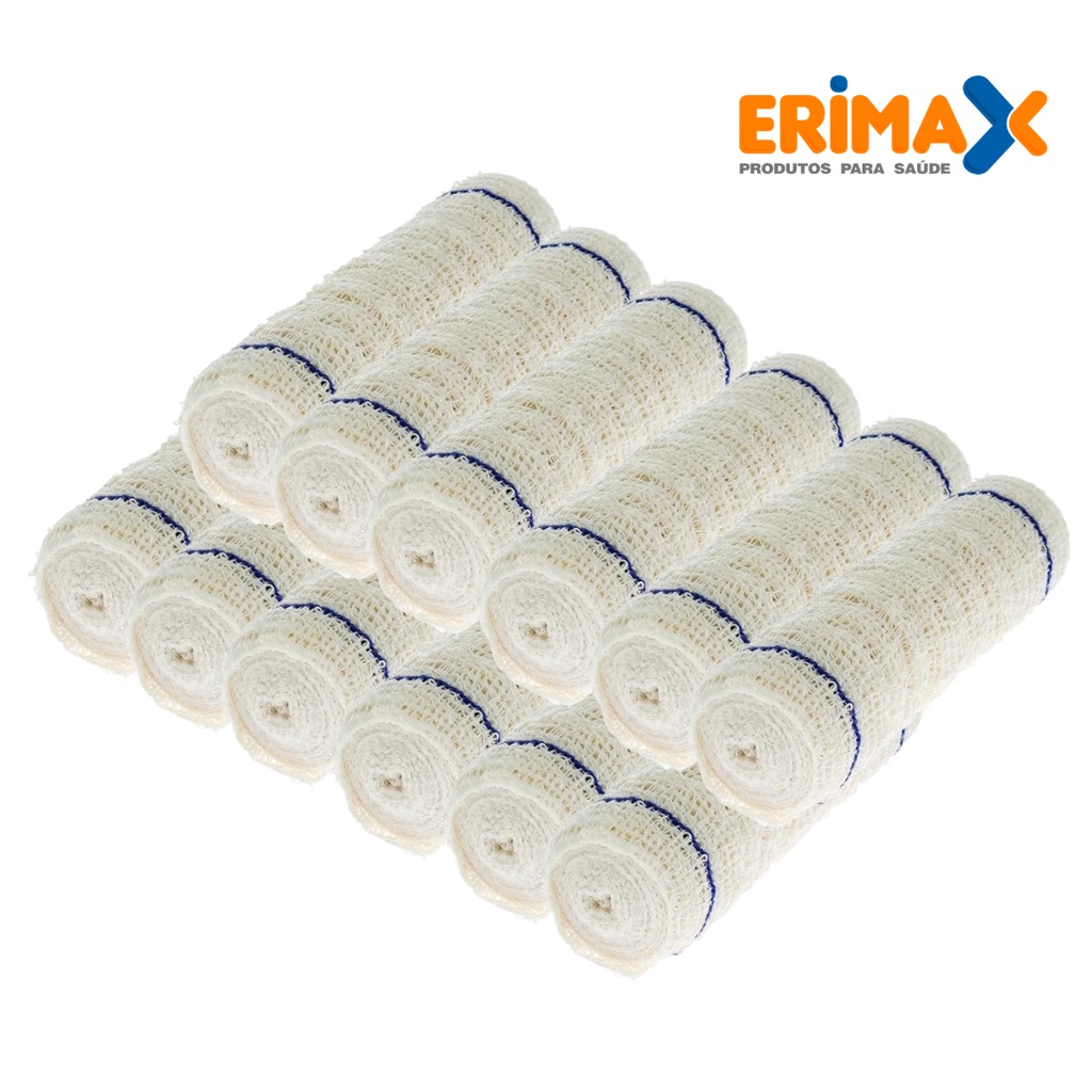 Faixa Atadura Crepom Curativo Algodão 15cm x 1,80m Kit 12 Rolos 13 Fios Anvisa Não estéril