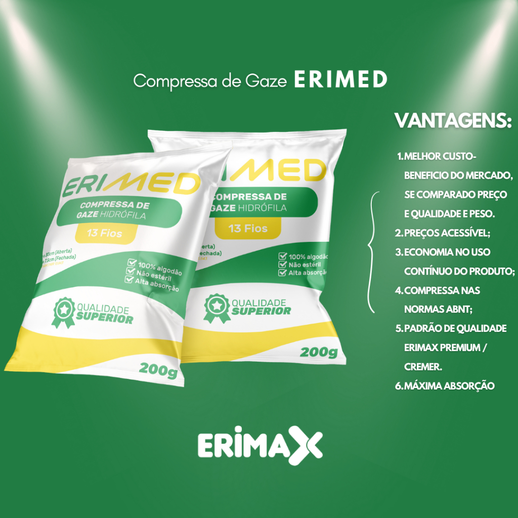Kit 2 Compressa De Gaze 13 Fios 500 Unidades Hidrófila Gazes Descartável Anvisa 300 Gramas Erimed