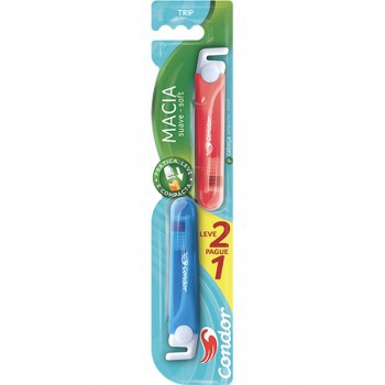 Escovas De Dentes Condor Trip Macia Com Capa Protetora - 02un