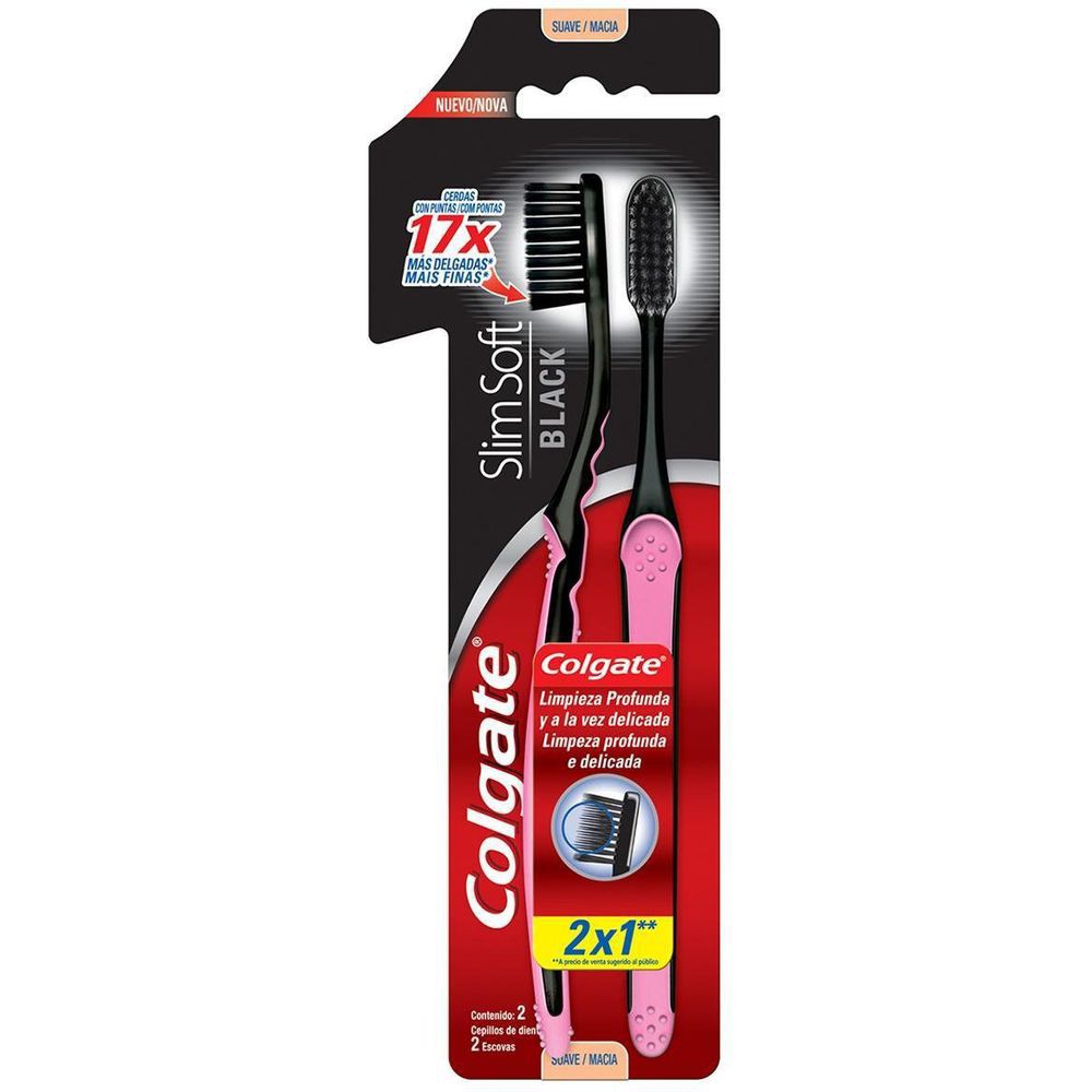 Kit Escova Dental Colgate Slim Soft Black 2 Unidades Cores Sortidas