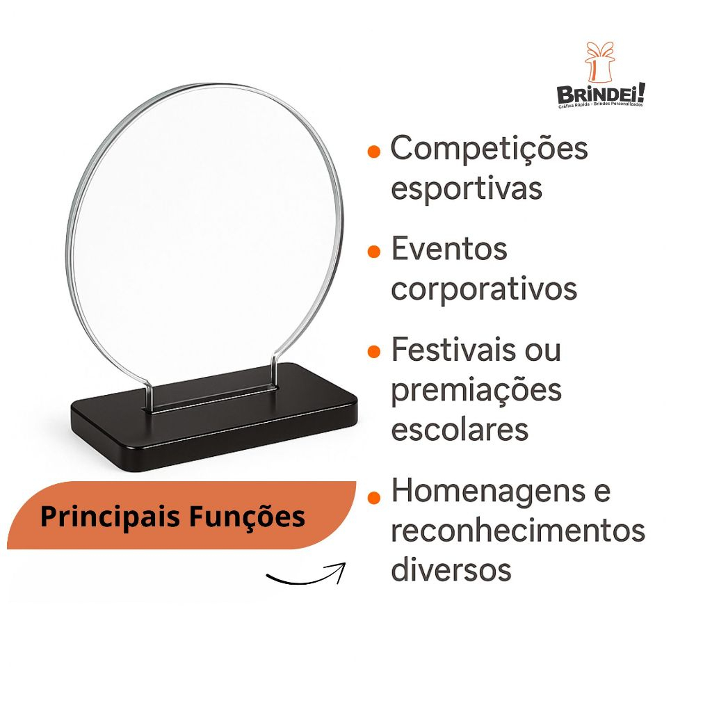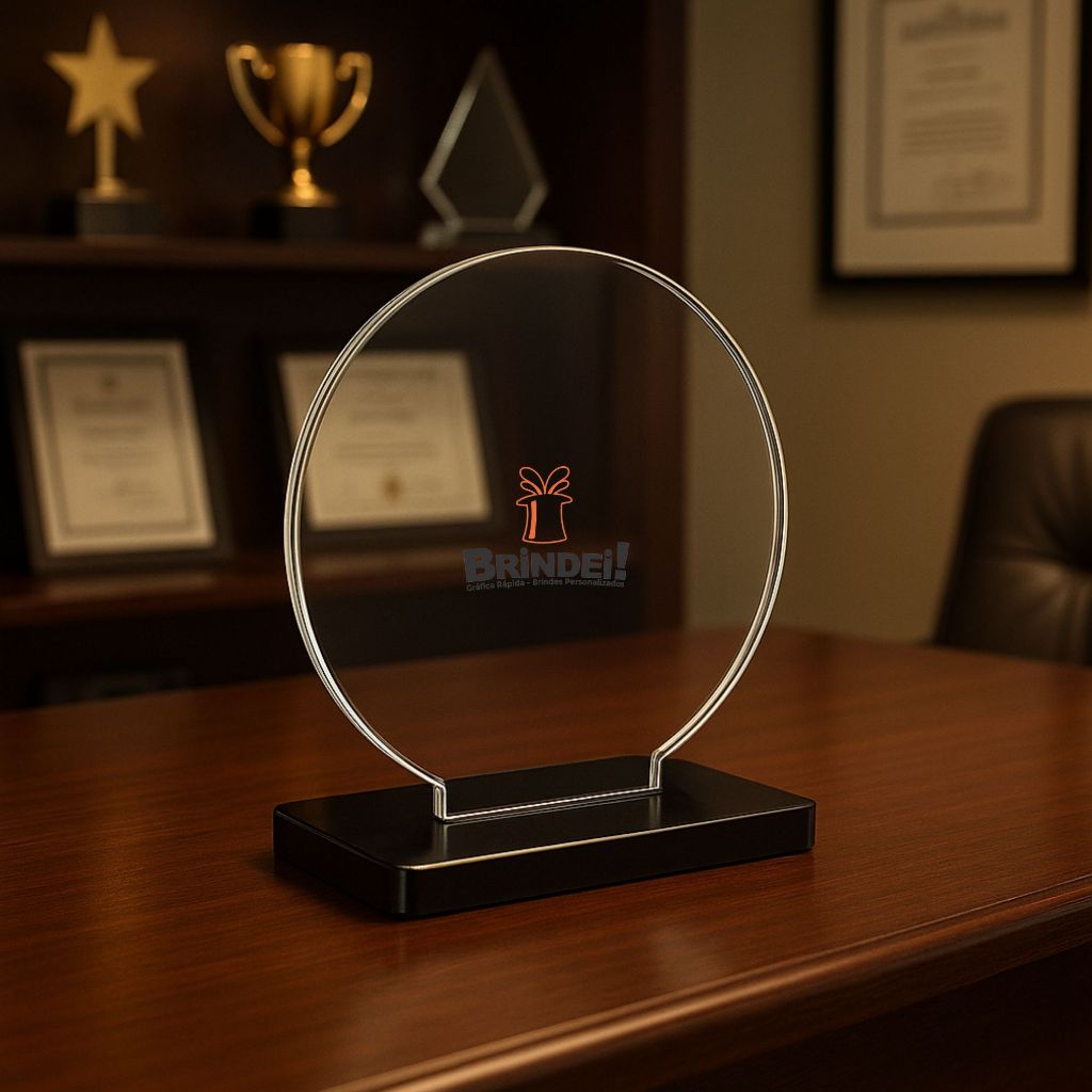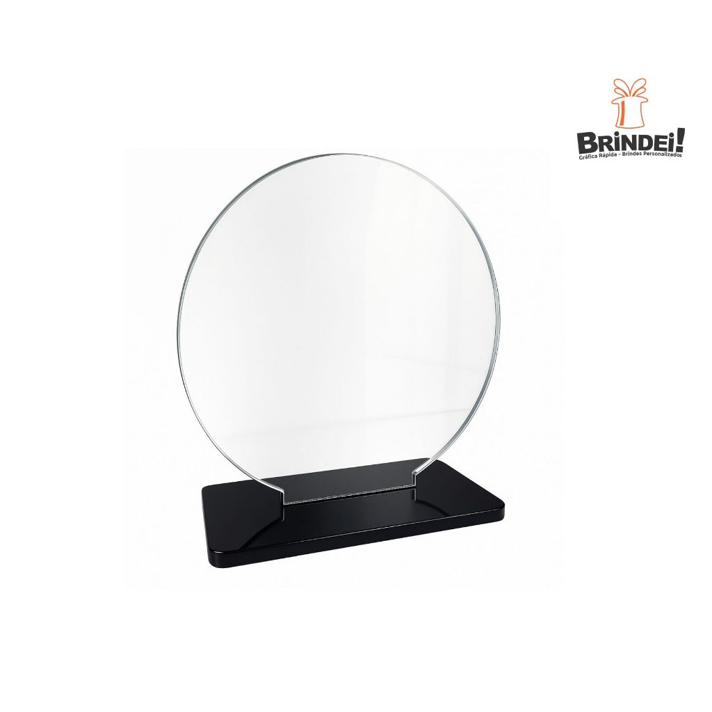 Troféu Mini Redondo 8cm Acrílico Cristal 2mm C/base Preta Kit 5 - 10 - 15 Unidades