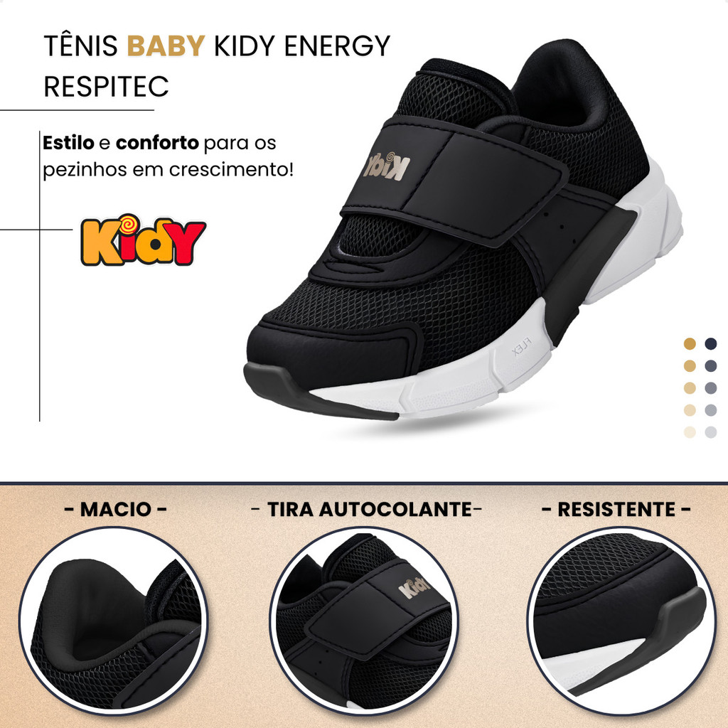 Tênis Baby Kidy Energy Respitec Masculino Estiloso Tira Autocolante Confortável