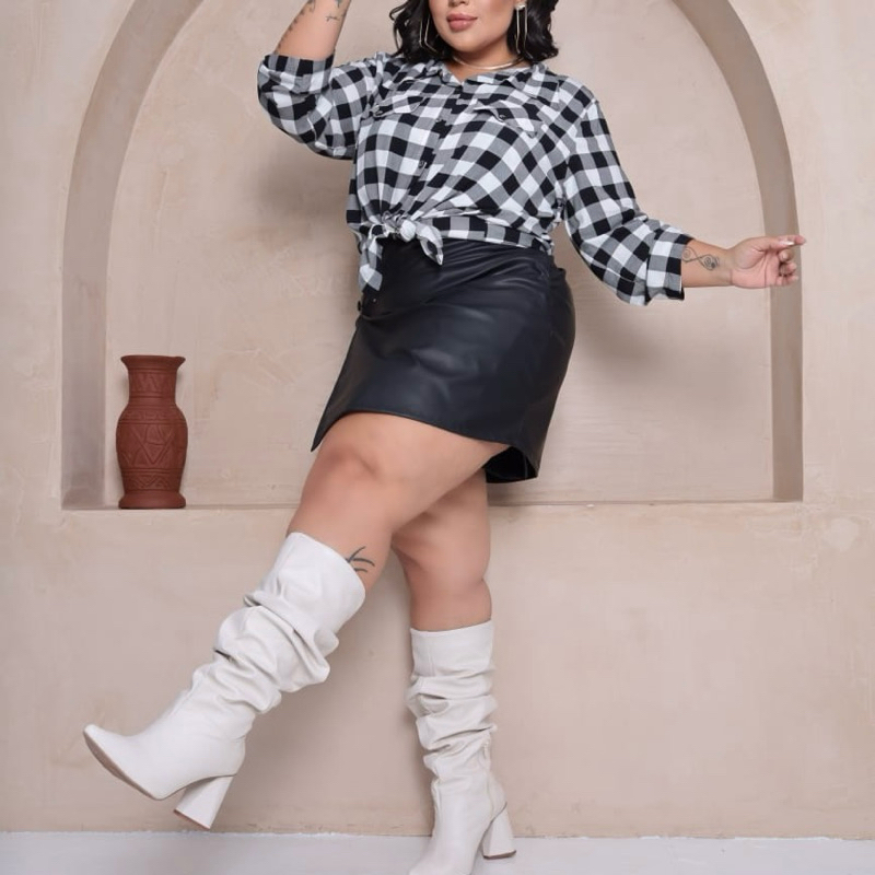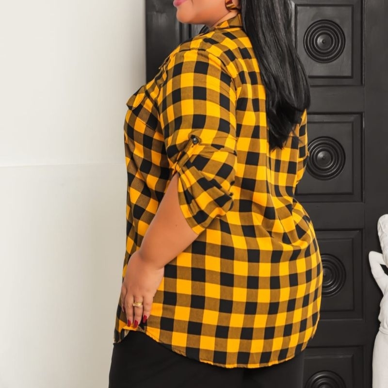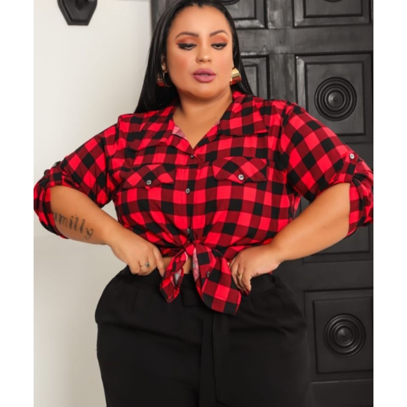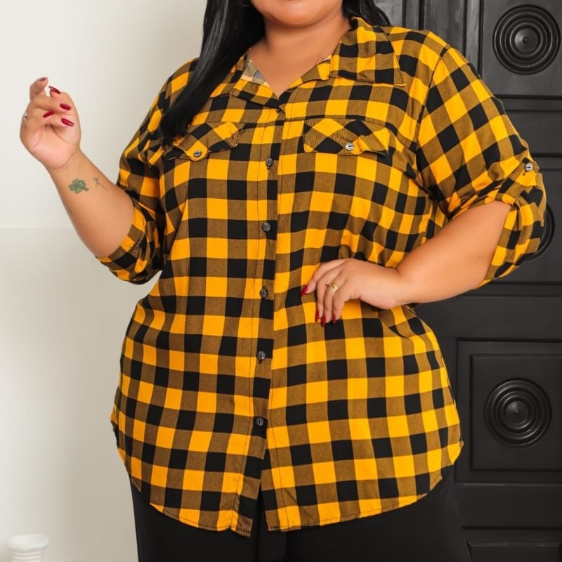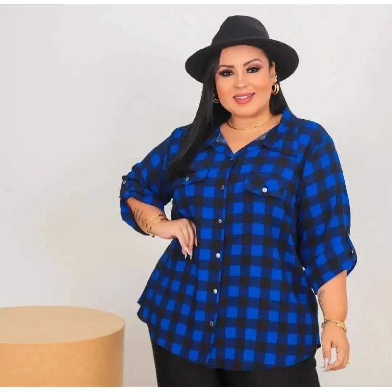 Camisa xadrez plus size feminina, G1 ao G4 (48 ao 58), colorida, manga 3/4
