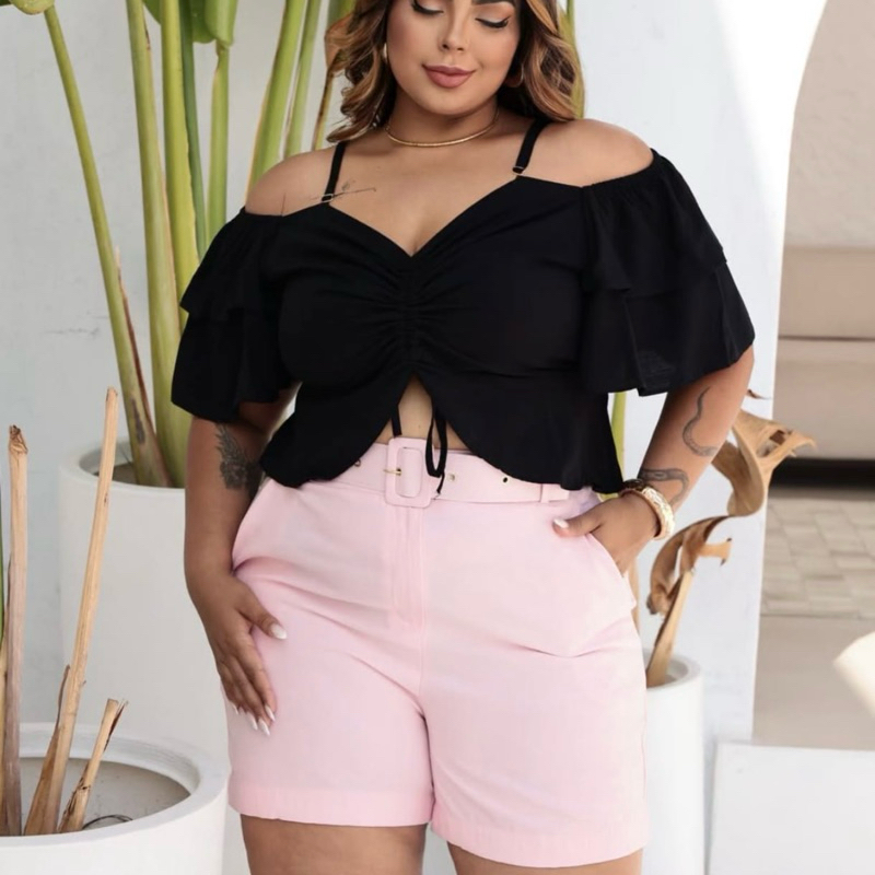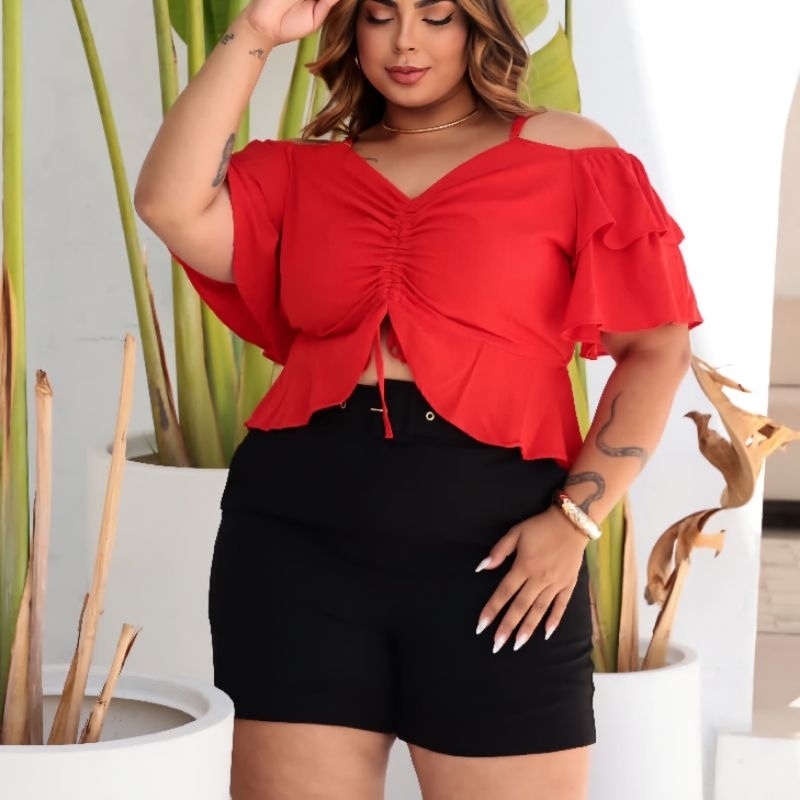 Cropped plus size manga boca de sino babado G1 G2 G3