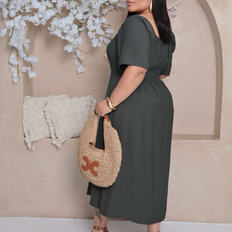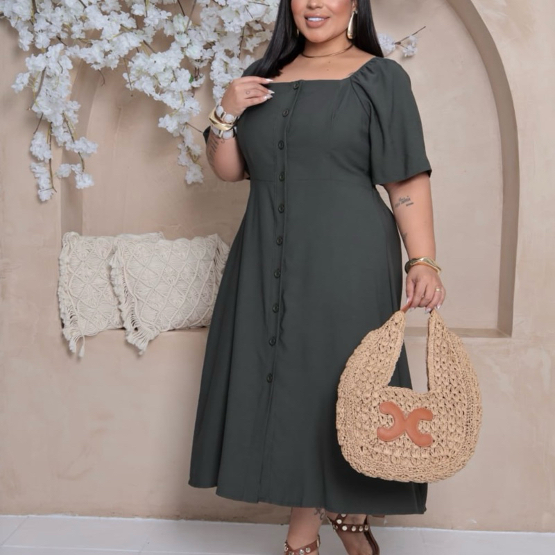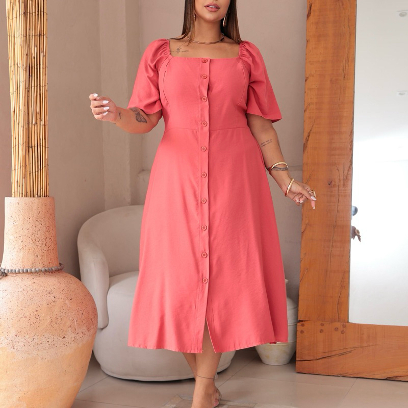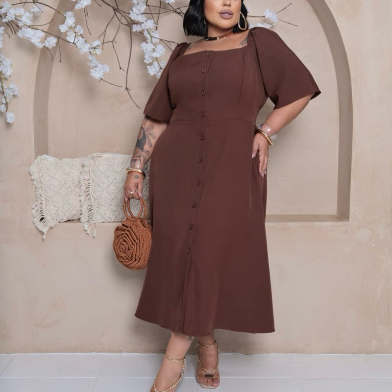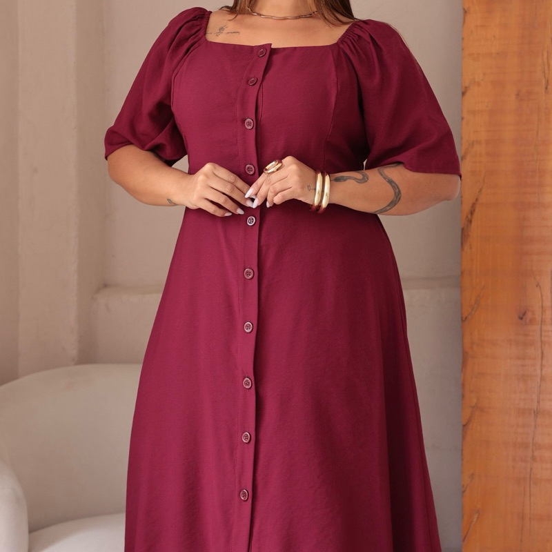 Vestido longuete plus size com botão | G1 ao G3 | Sensorial