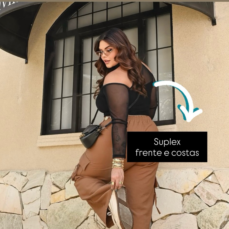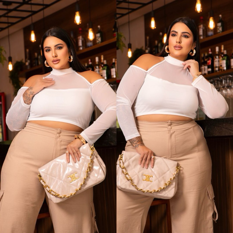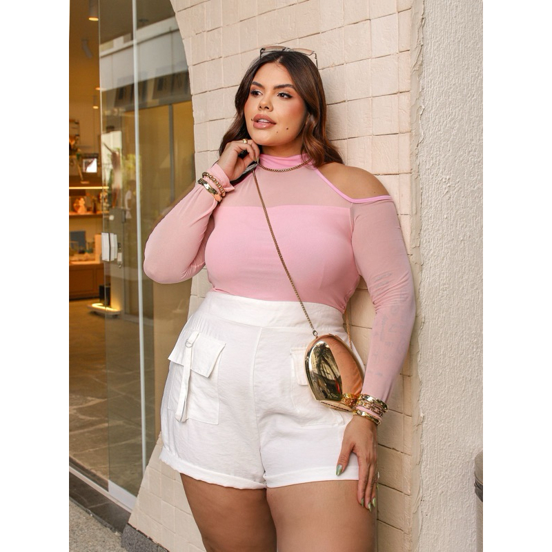 Cropped plus size manga longa tule - Lari