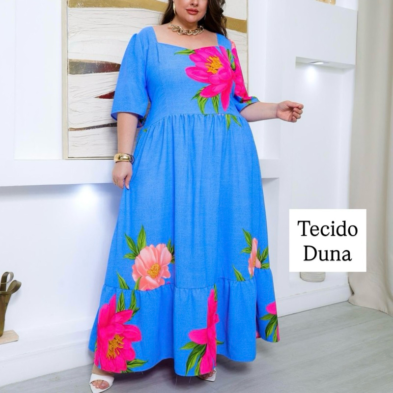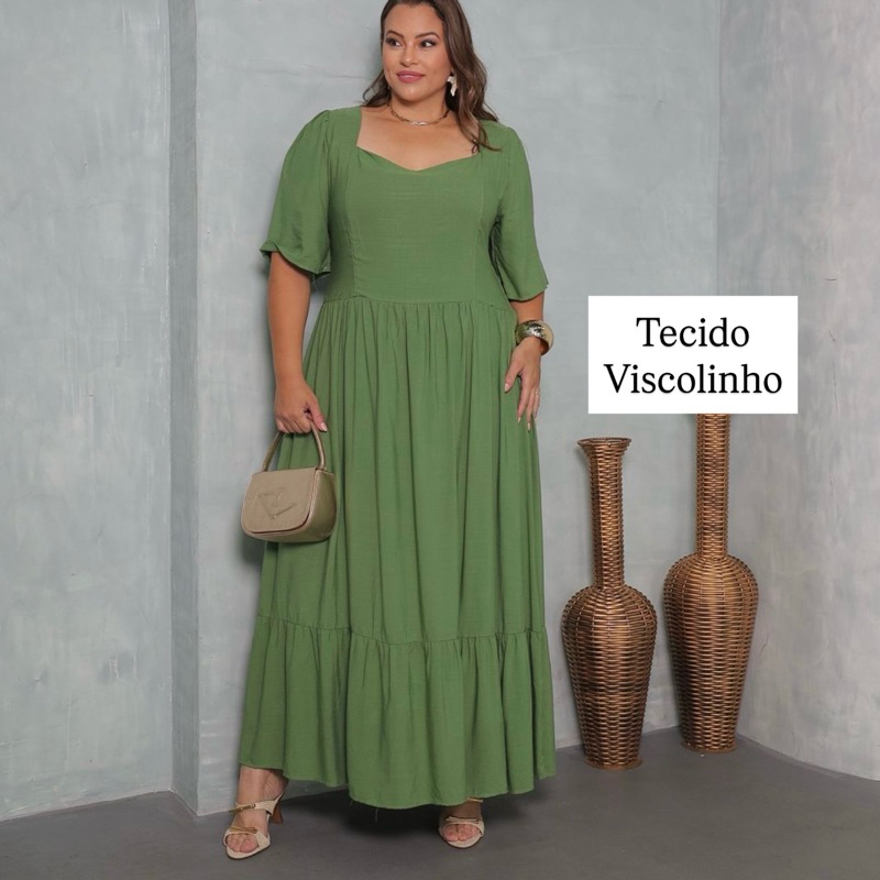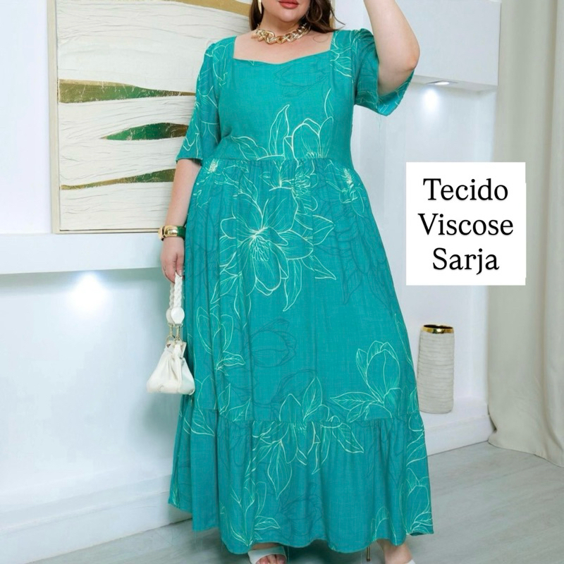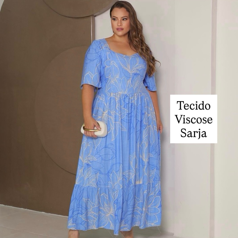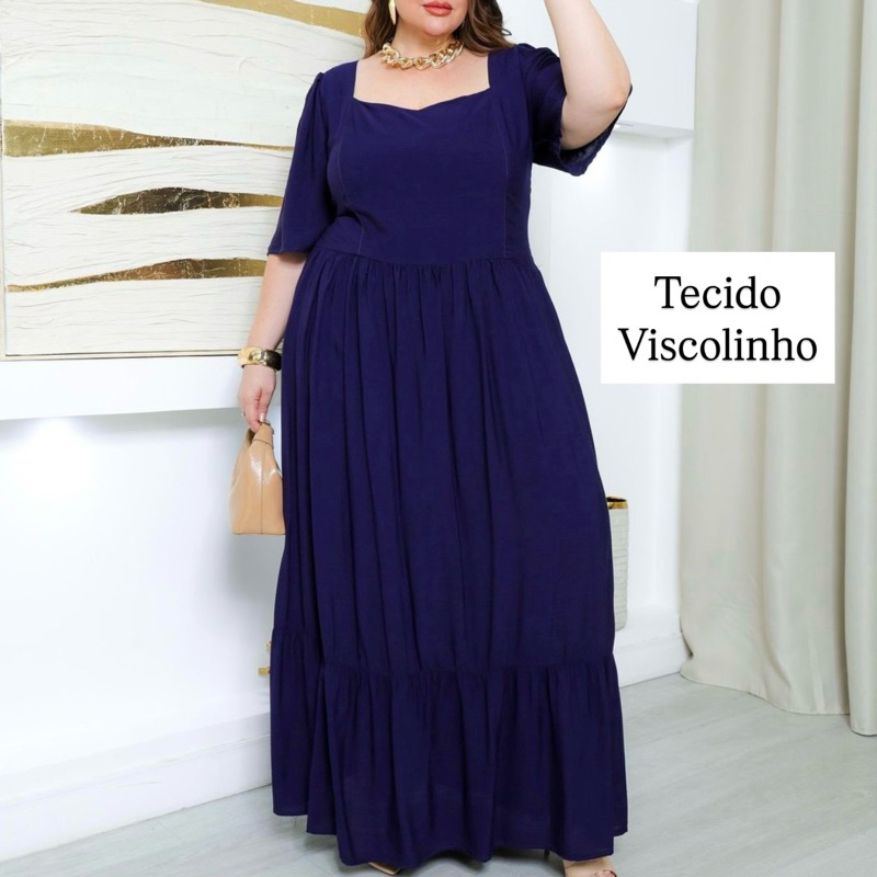 Vestido longo plus size G1 ao G4 | moda modesta (48 ao 60) Camila