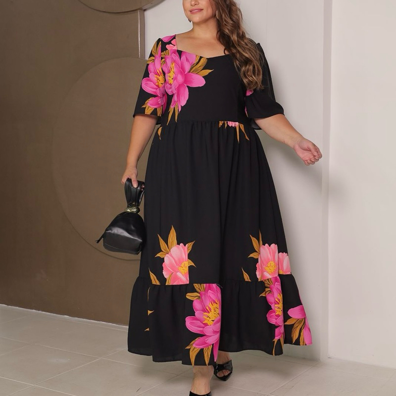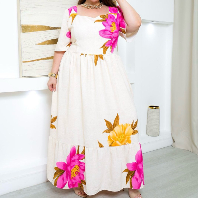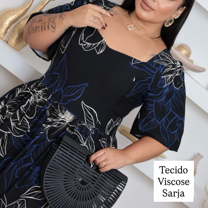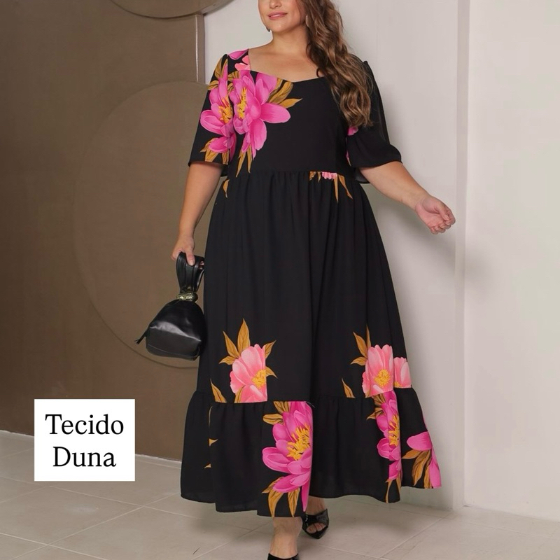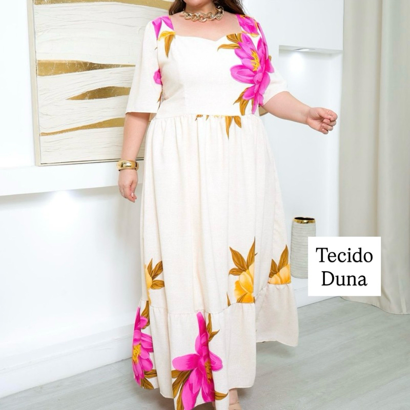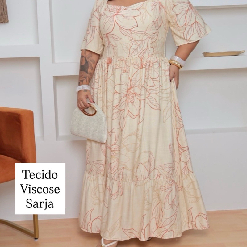 Vestido longo plus size G1 ao G4 | moda modesta (48 ao 60) Camila