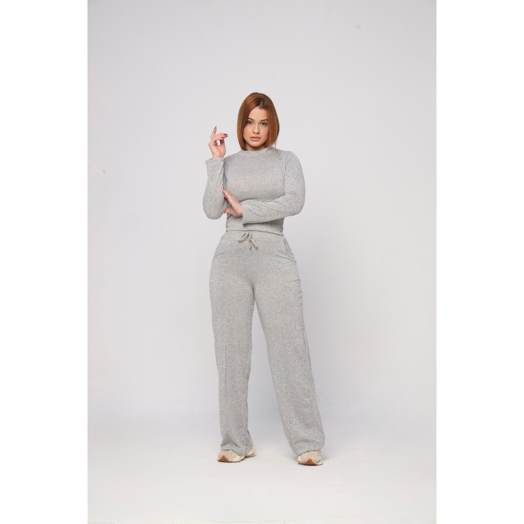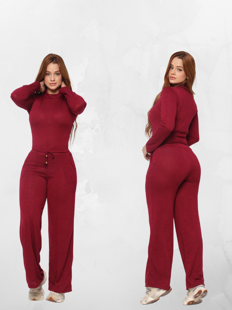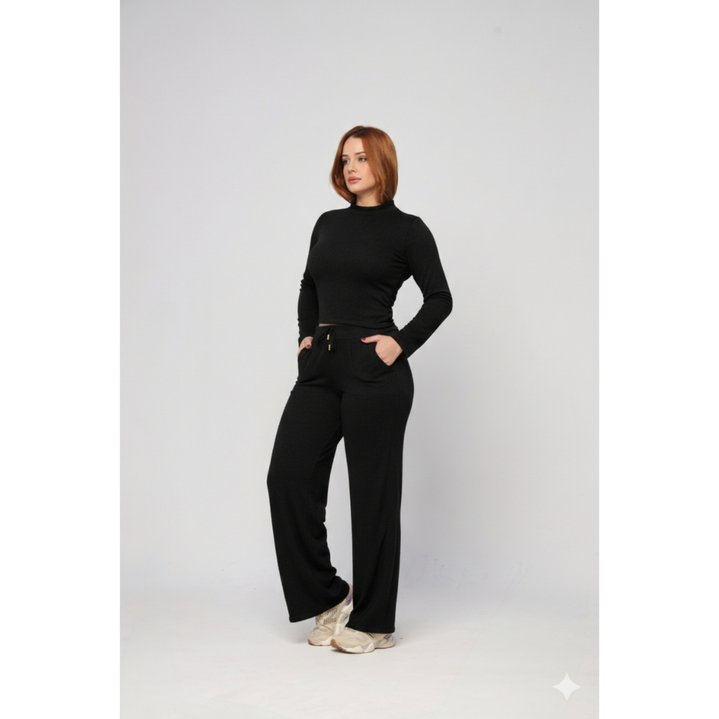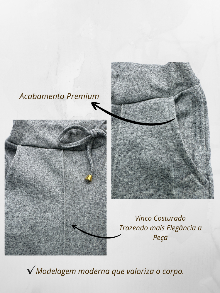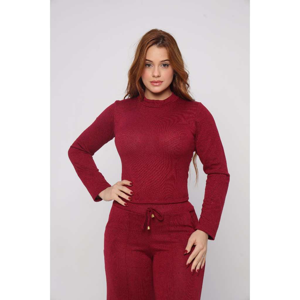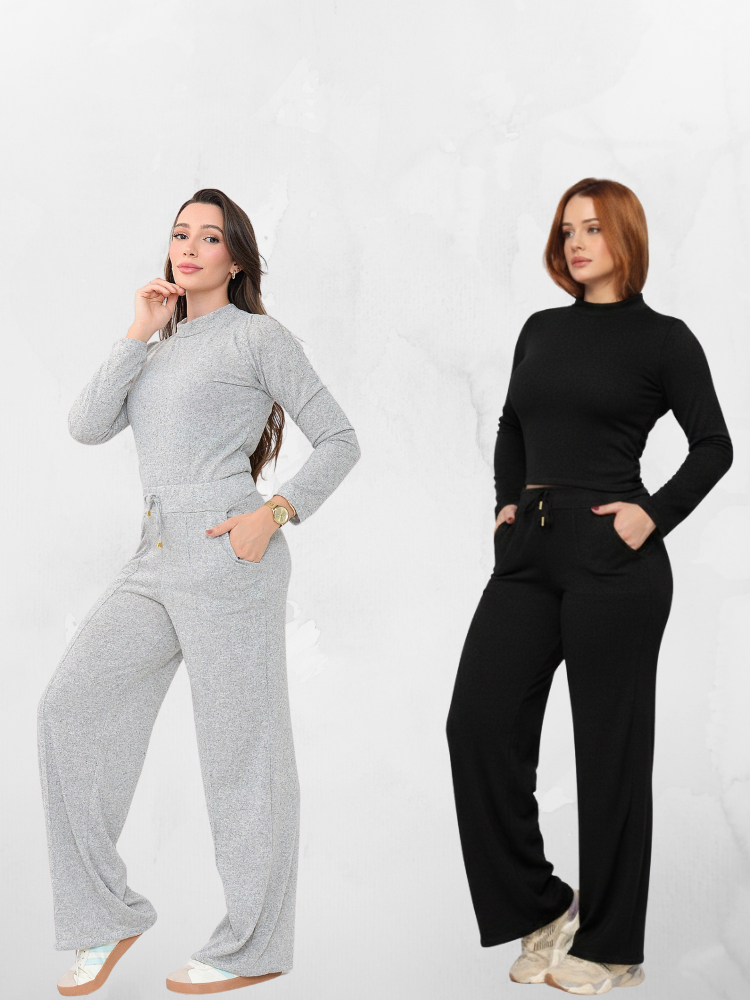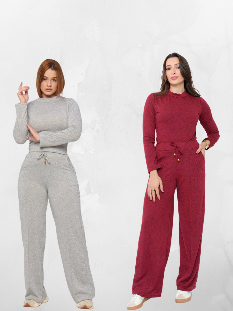 Conjunto Feminino Lanzinha Premium Elegante Frio Blusa Manga Longa + Calça Pantalona Outono/Inverno
