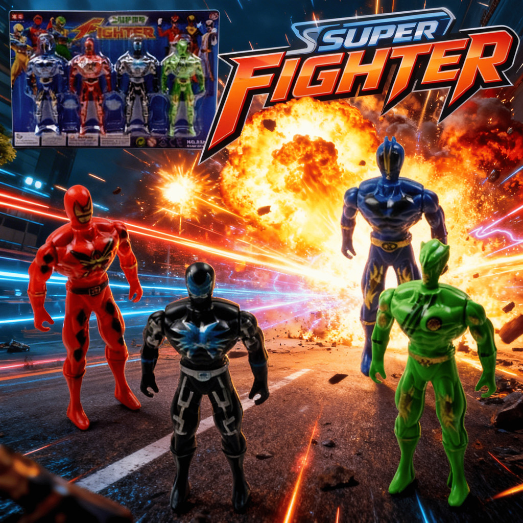 Boneco Herói 04 Peças Super Fighter Brinquedo Infantil Criança Menino