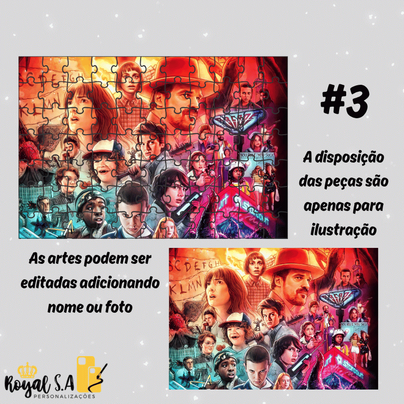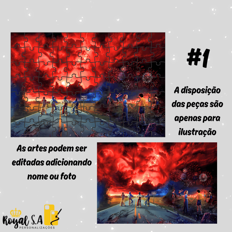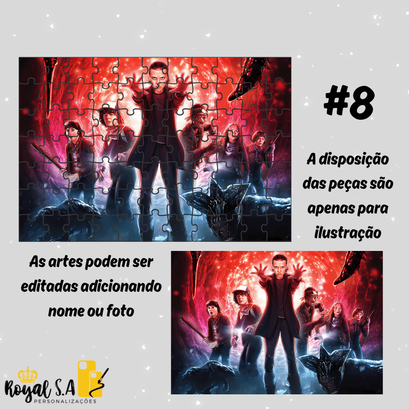 Quebra-Cabeça personalizado Stranger Things em MDF - Puzzle 24pç/ 32pç/ 64pç/ 90pç/ 200pç/ 500peças