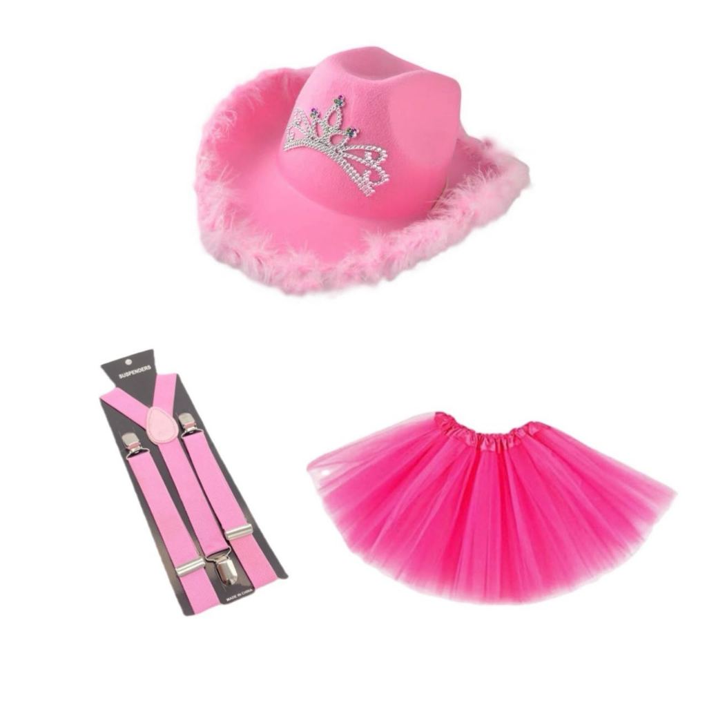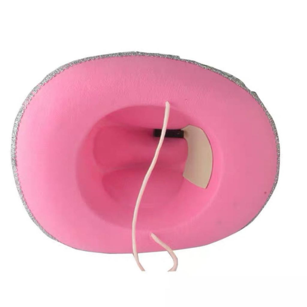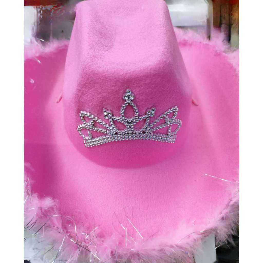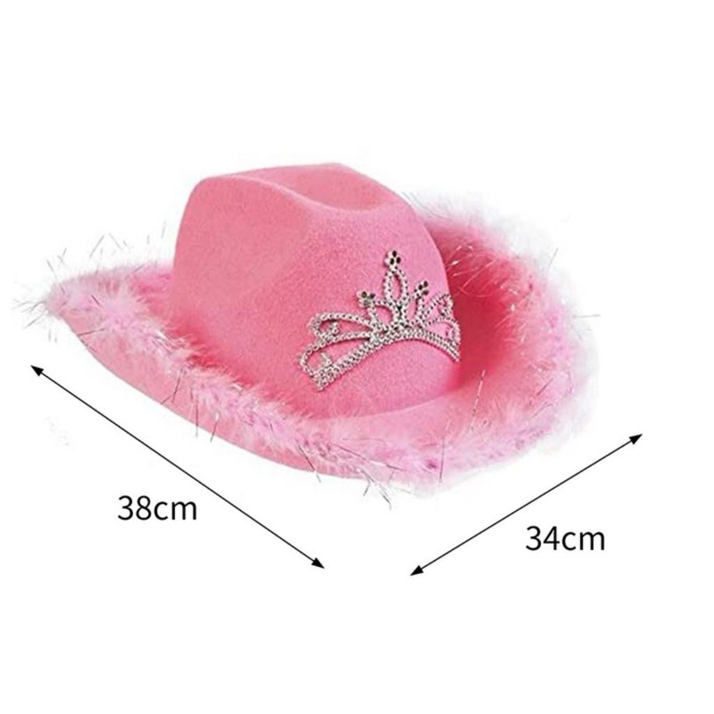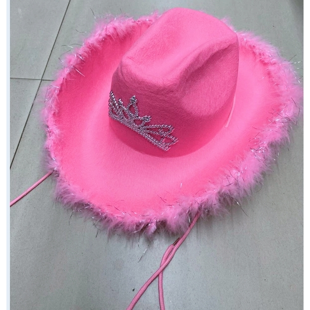 Chapéu De Cowboy Sheriff Esttrla Masculino e Feminino Rosa Com Pena/Fedora
