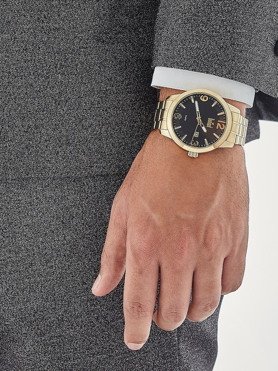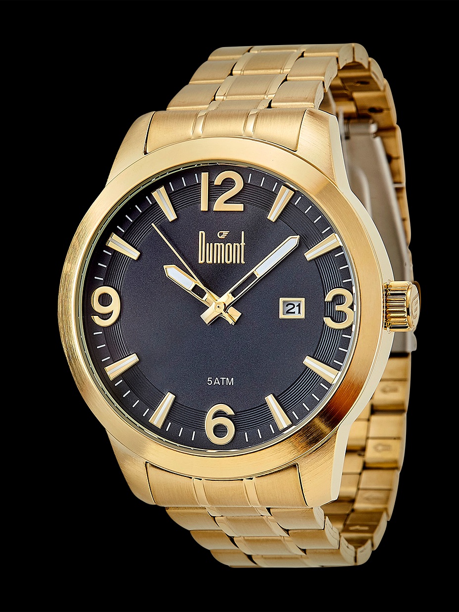 Relogio Dumont Masculino Dourado Fundo Preto Du2315ao/4c