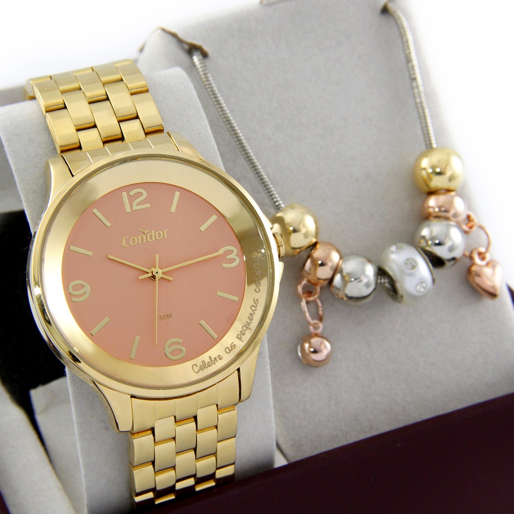 Relógio Condor Femininno Dourado + Kit Copc21Aeaz/K4T