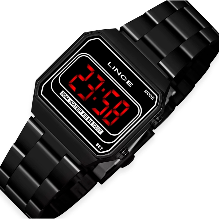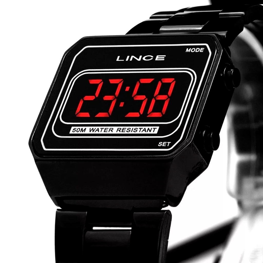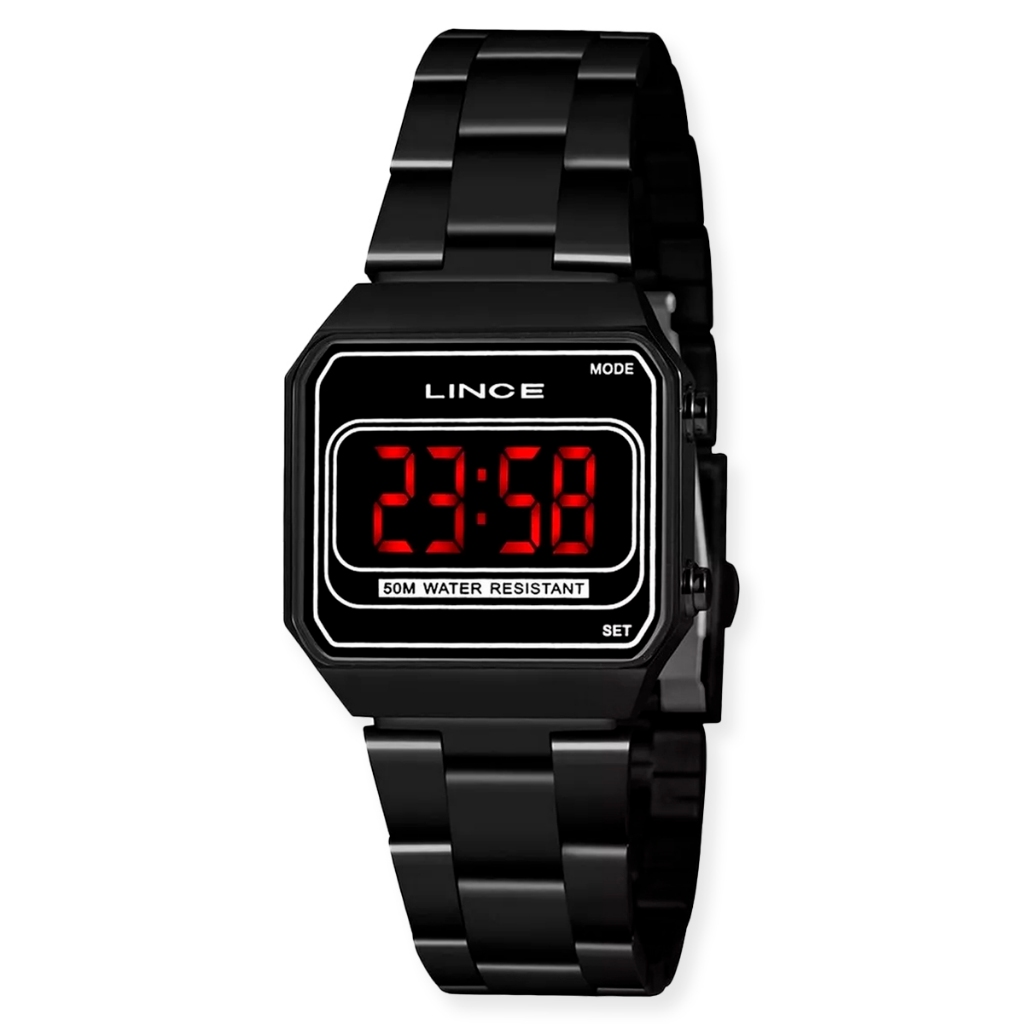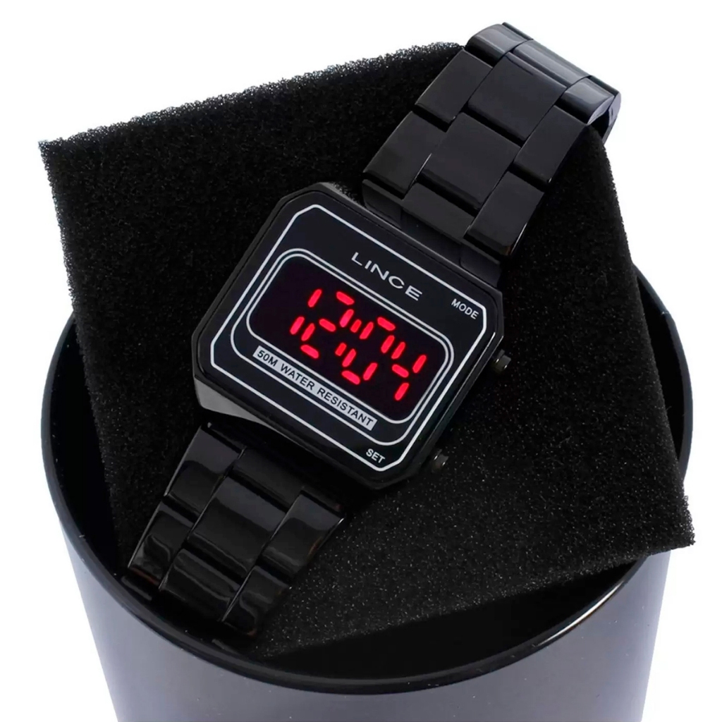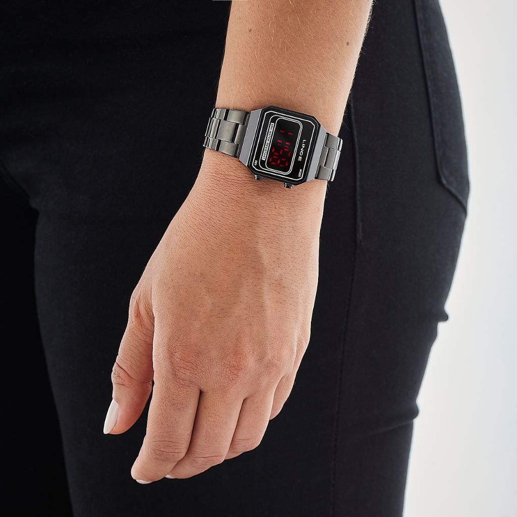 Relógio Lince Feminino Digital Led Preto Quadrado Mdn4645L Pxpx