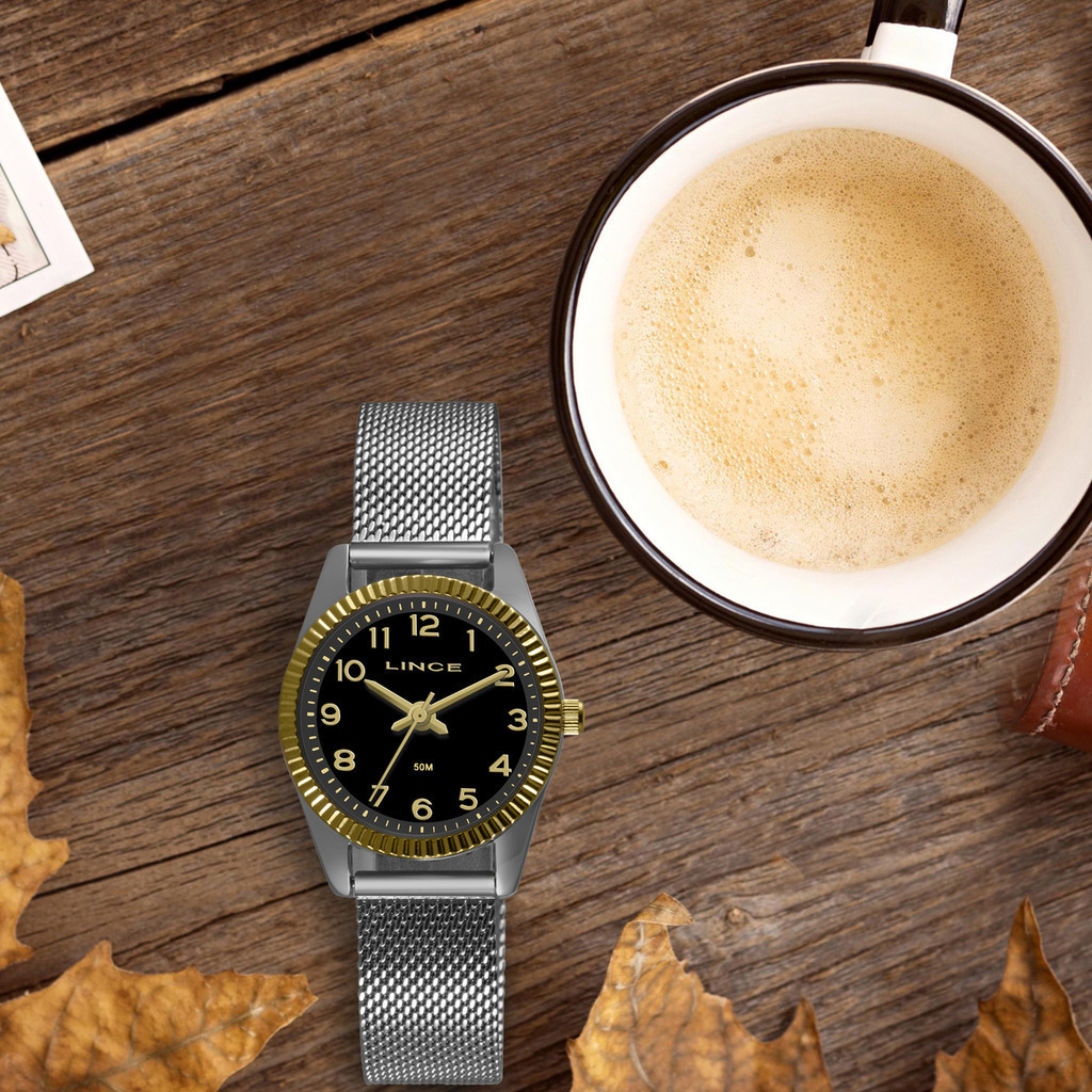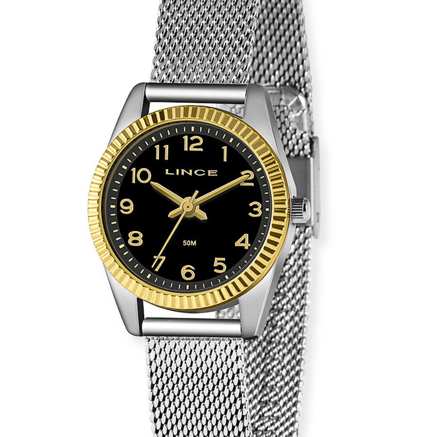 KIT RELÓGIO LINCE FEMININO DOURADO E PRATA LRT4674L P2SX