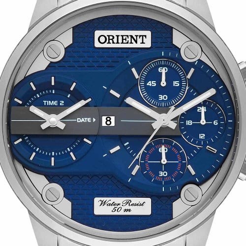 RELÓGIO ORIENT MASCULINO PRATA DUAL TIME MBSST001 D1SX