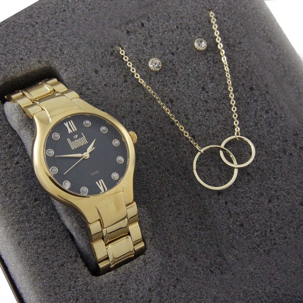 Relogio Dumont Feminino Dourado + Kit Du2035Lob/K4P