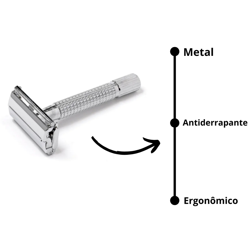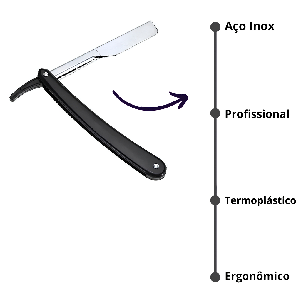 Kit Navalha Barbeiro Profissional + Aparelho de Barbear Retrô Clássico + 5 Lâminas Aço Inox