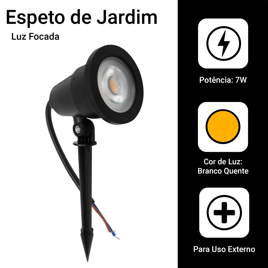 Kit 2 Luminária Espeto Jardim Com Lâmpada Cob Led 7w Amarela