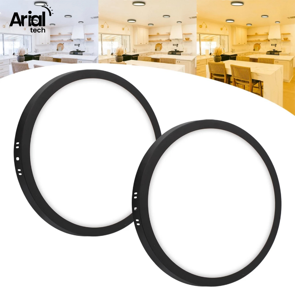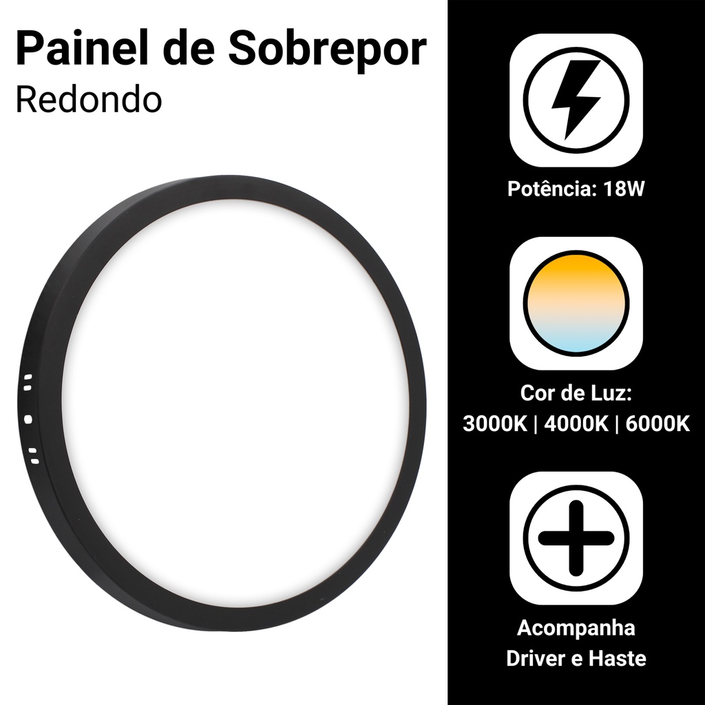 Kit 2 Painel Plafon Led 18w Sobrepor Redondo Cor Preto Bivolt