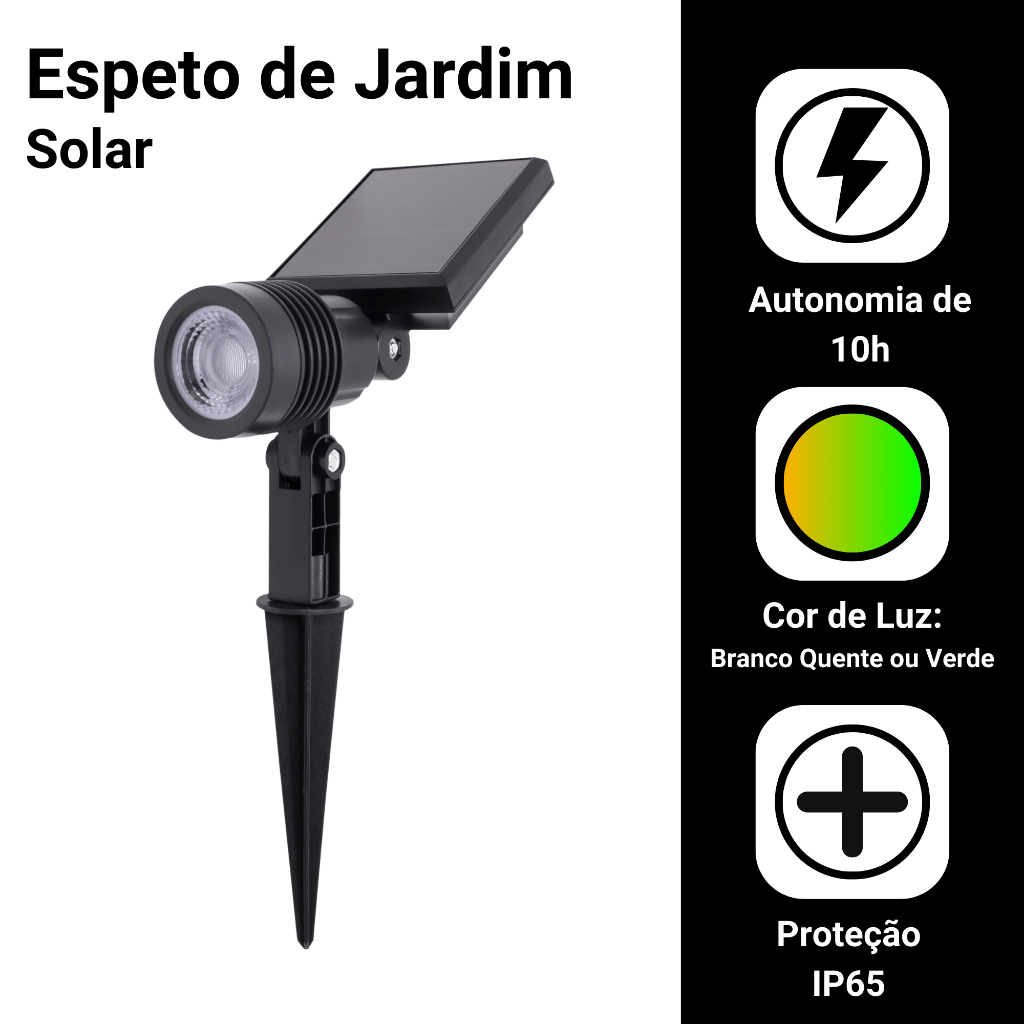 Kit 2 Luminária Espeto Jardim Energia Solar Super Led 10w Spot Cor Preto