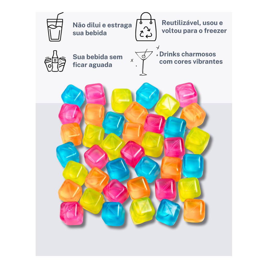 Cubos De Gelo Artificial Reutilizável Bebidas Drinks Não Dilui na Bebida