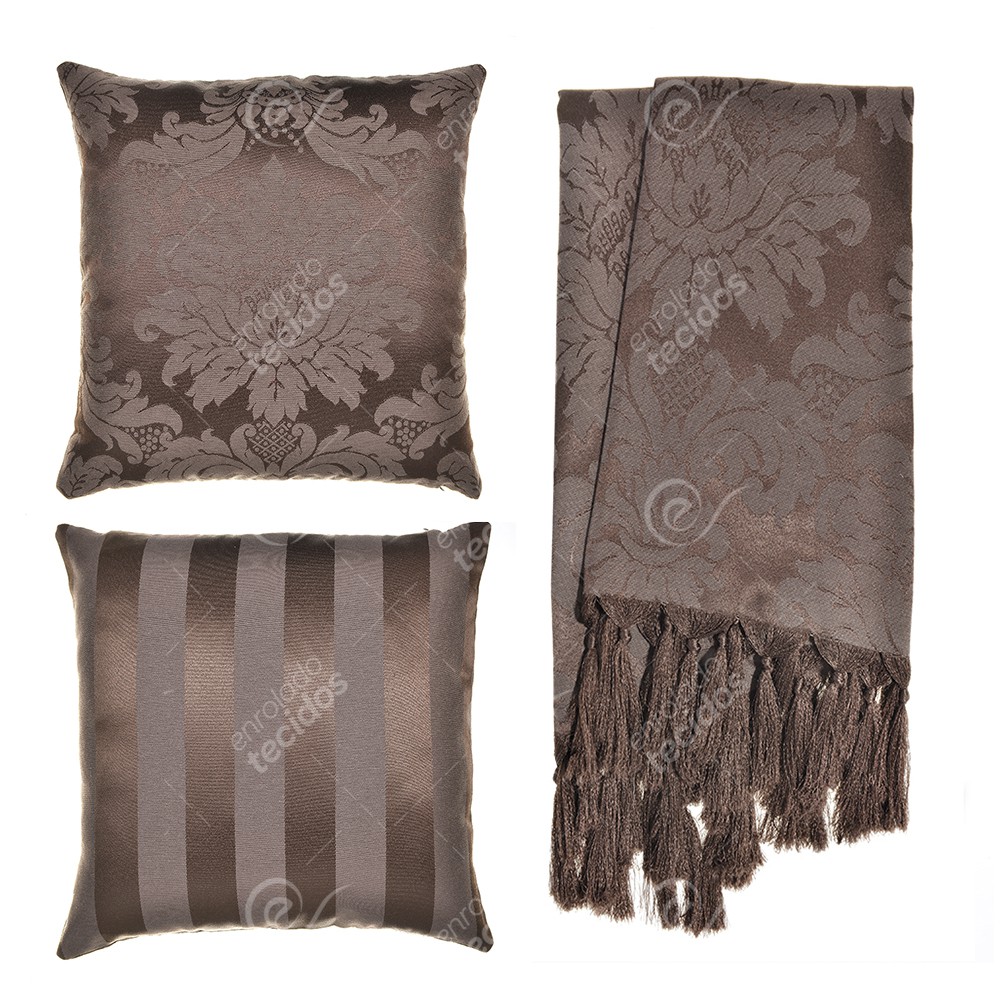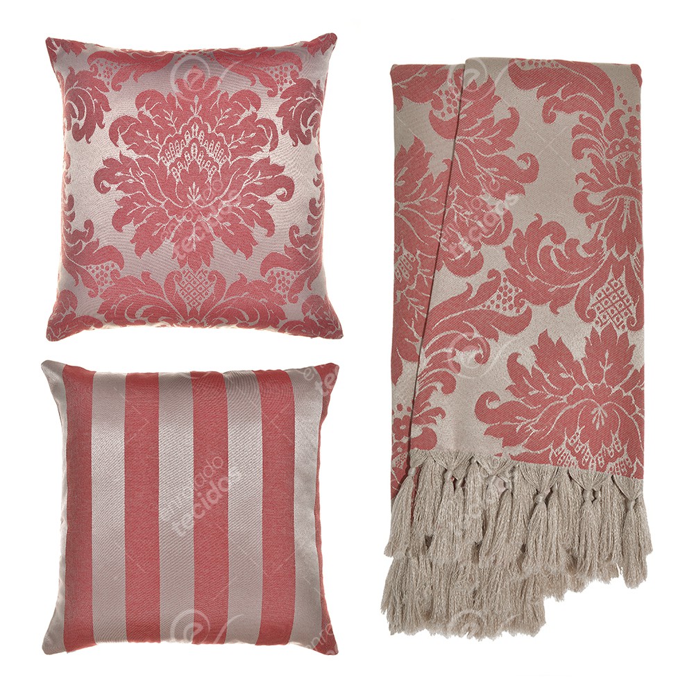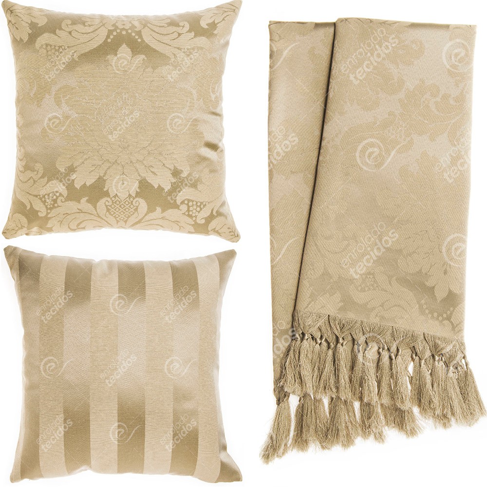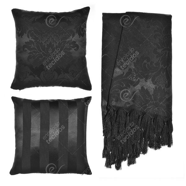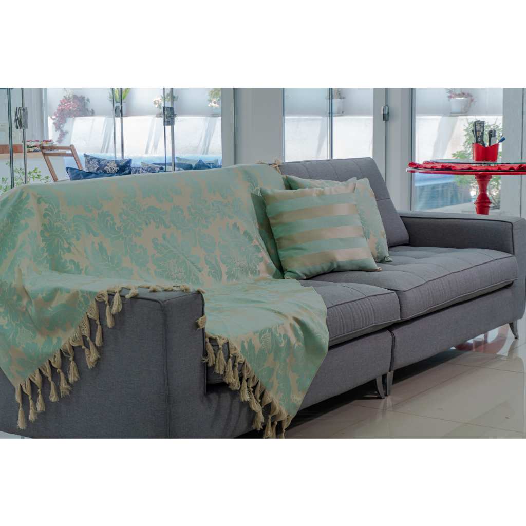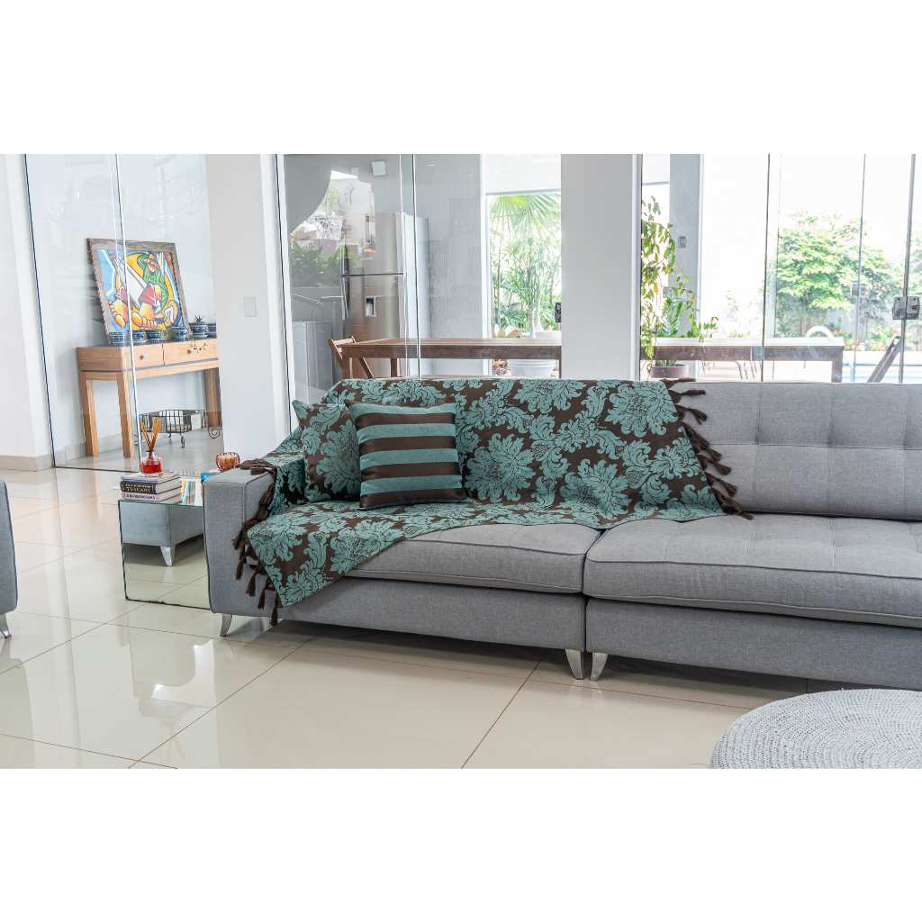 Kit 1 Manta Xale para Sofá e Poltronas Em Tecido Jacquard + 2 Capas De Almofada Varias Cores