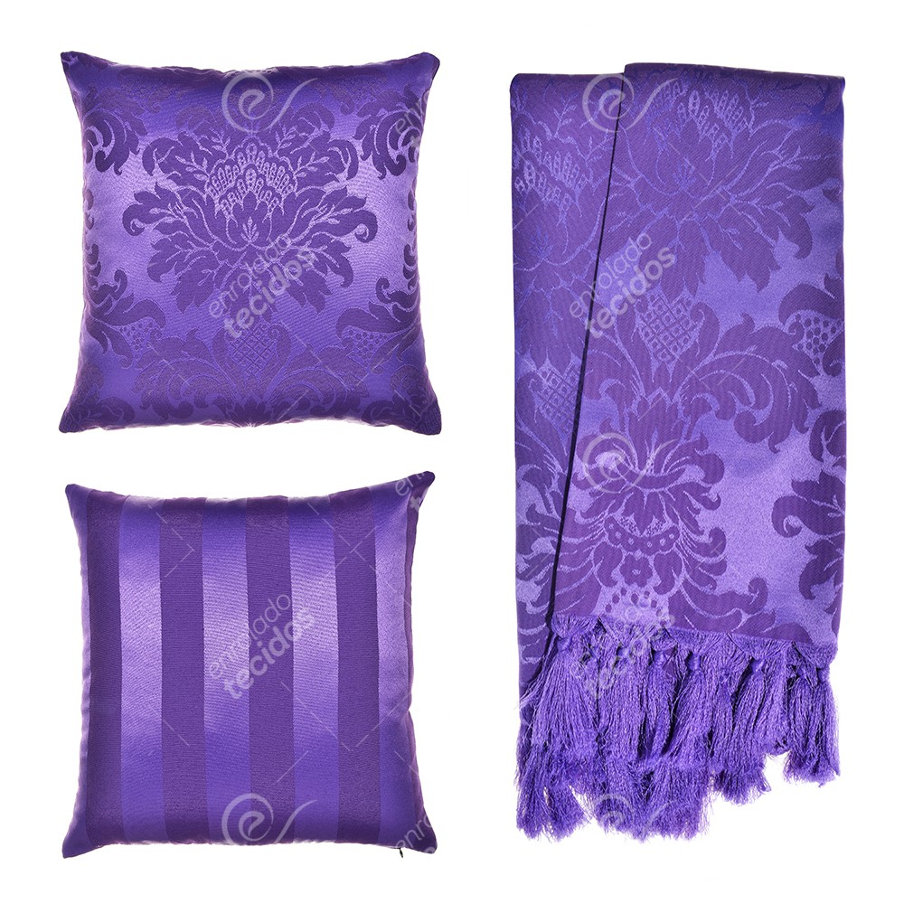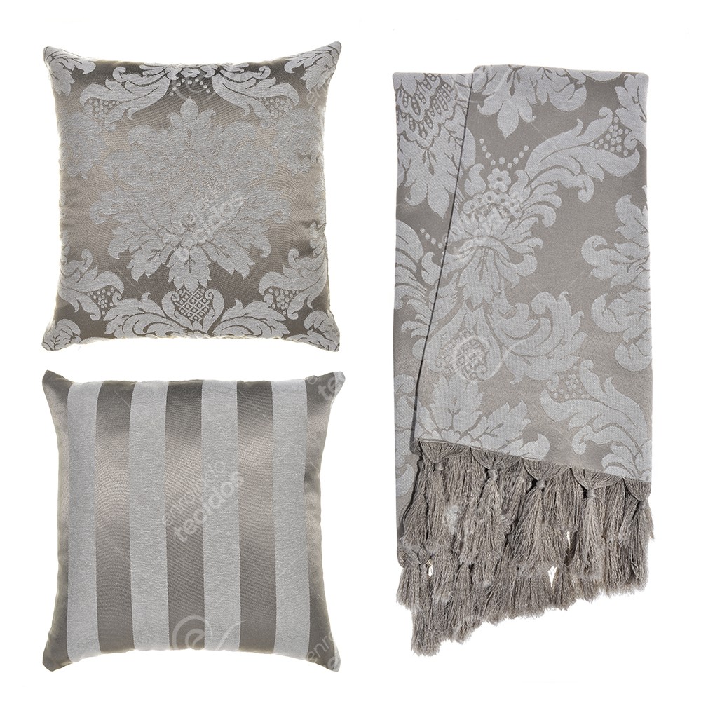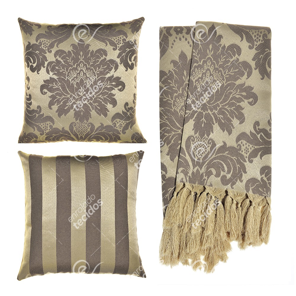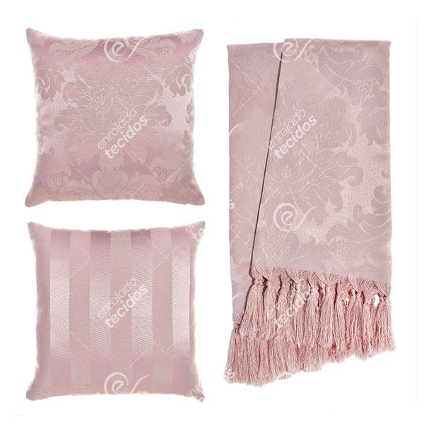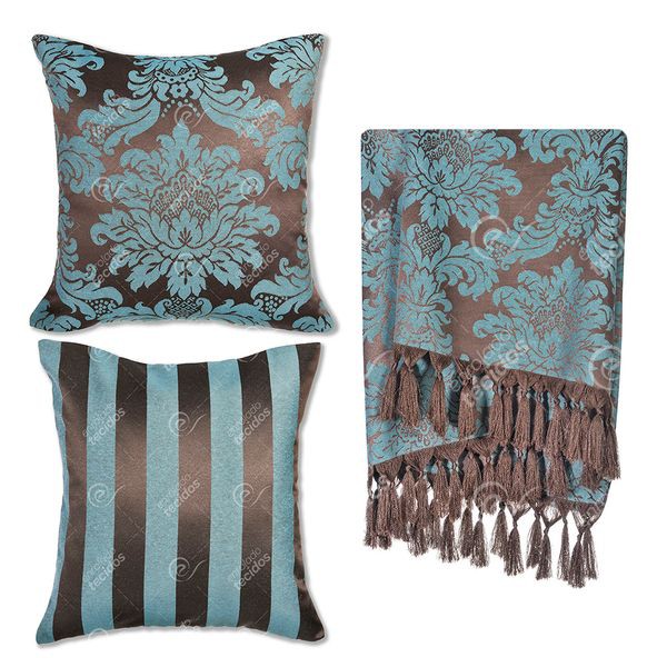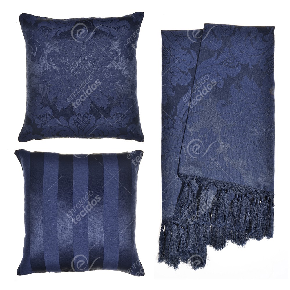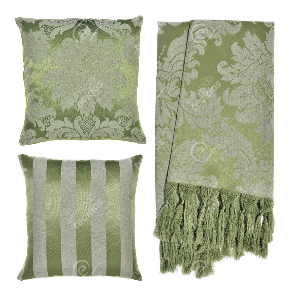 Kit 1 Manta Xale para Sofá e Poltronas Em Tecido Jacquard + 2 Capas De Almofada Varias Cores