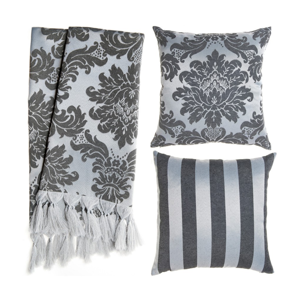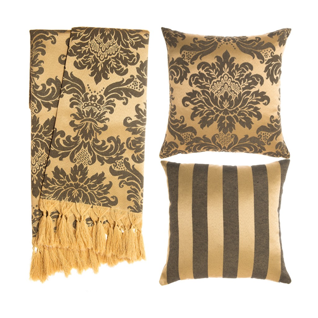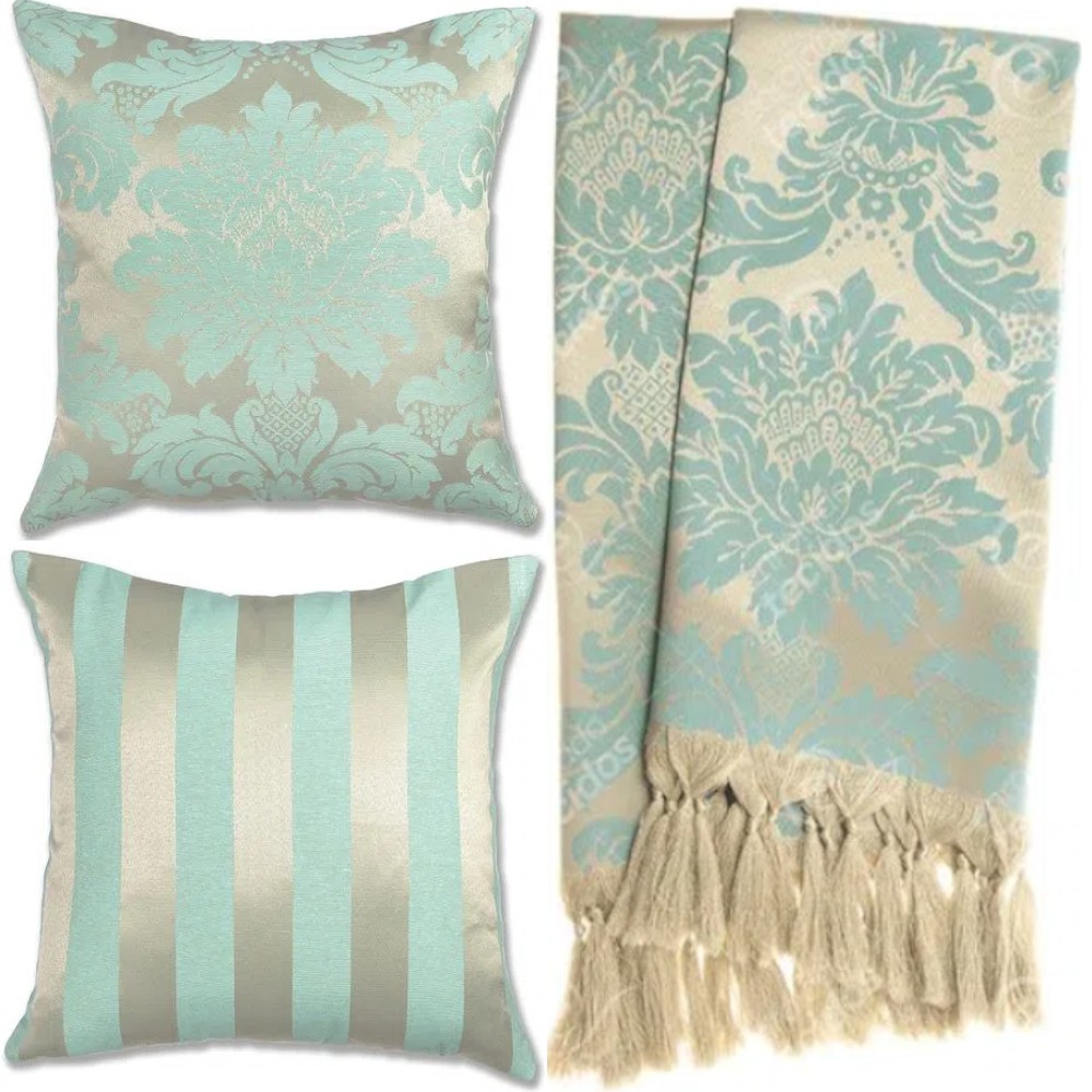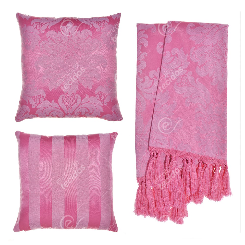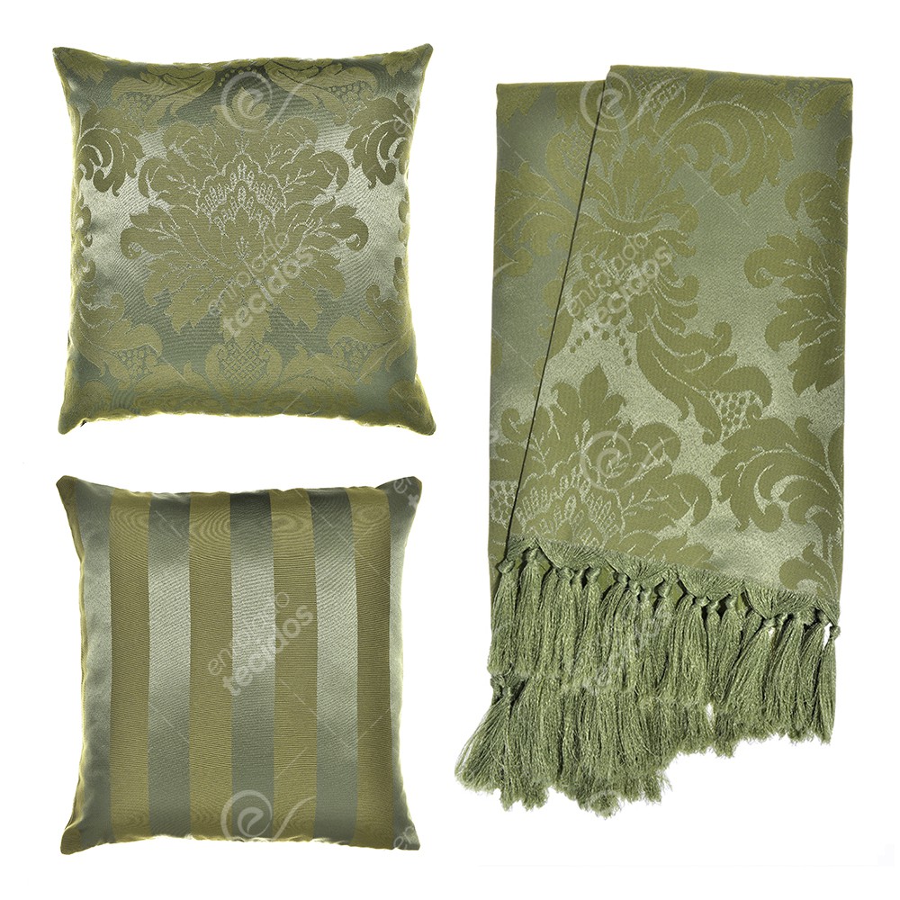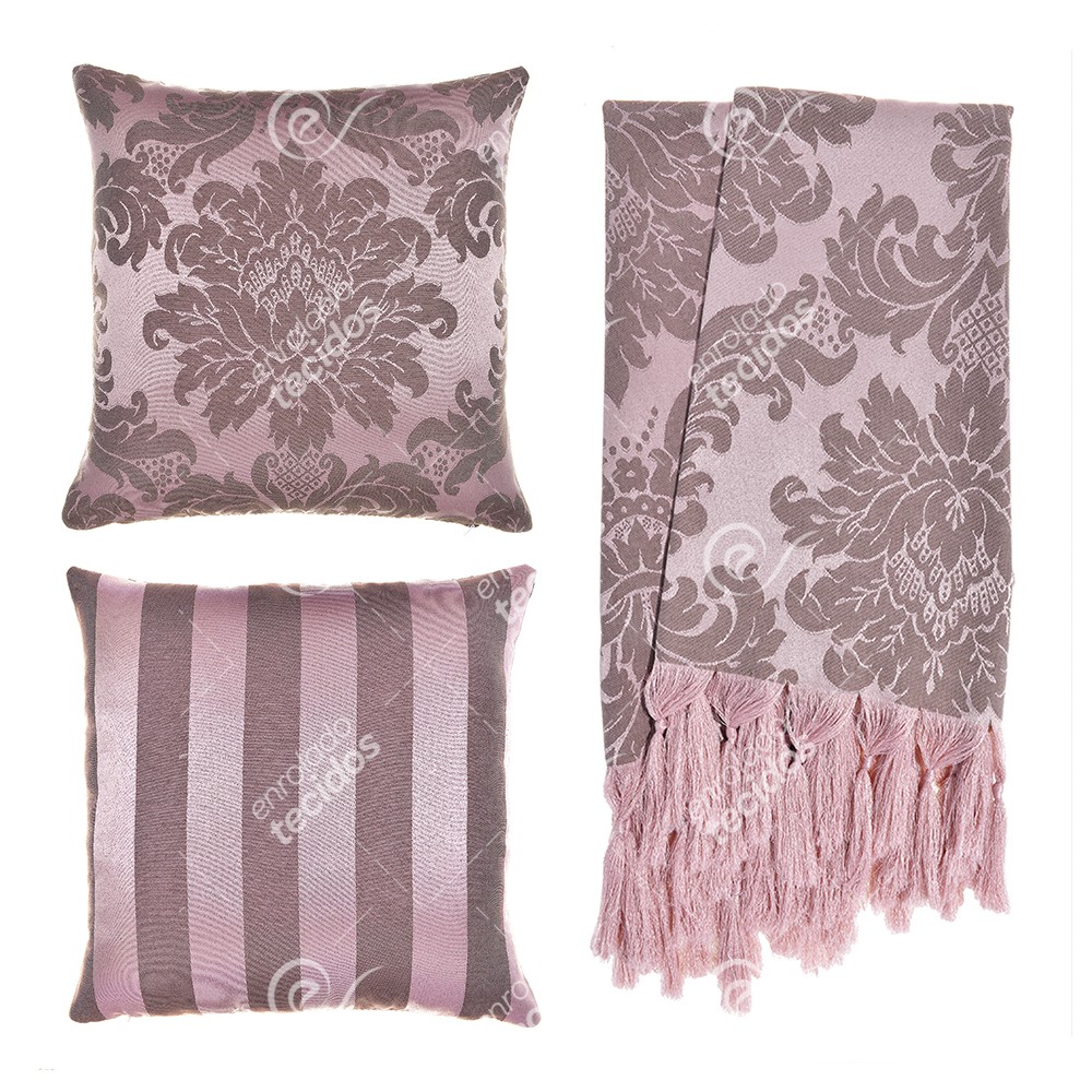 Kit 1 Manta Xale para Sofá e Poltronas Em Tecido Jacquard + 2 Capas De Almofada Varias Cores