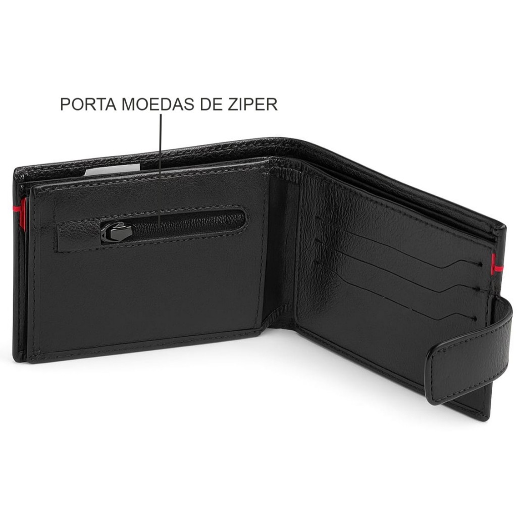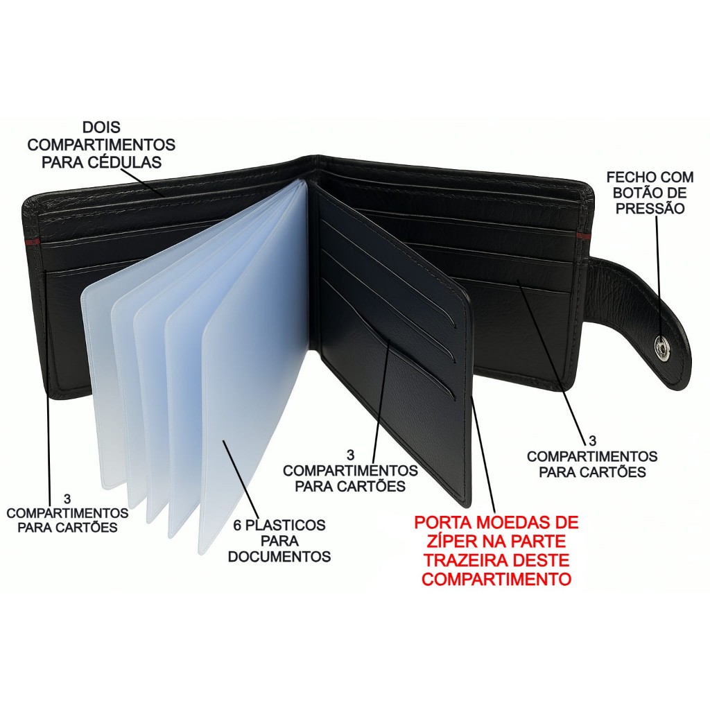 Carteira Masculina Couro Legítimo Premium Extra Macio Com Fecho Ref 957