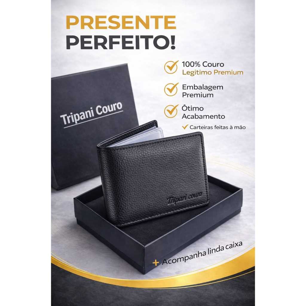 Carteira couro legítimo masculina super completa tripari couro porta moedas caixa presente Ref 301