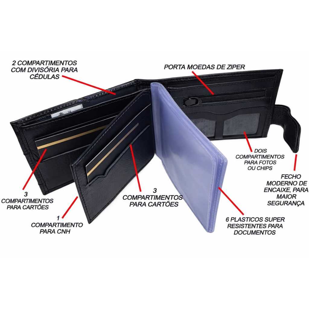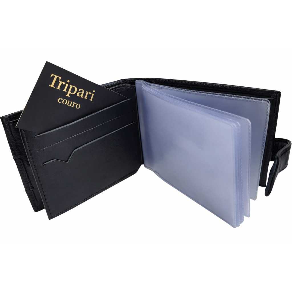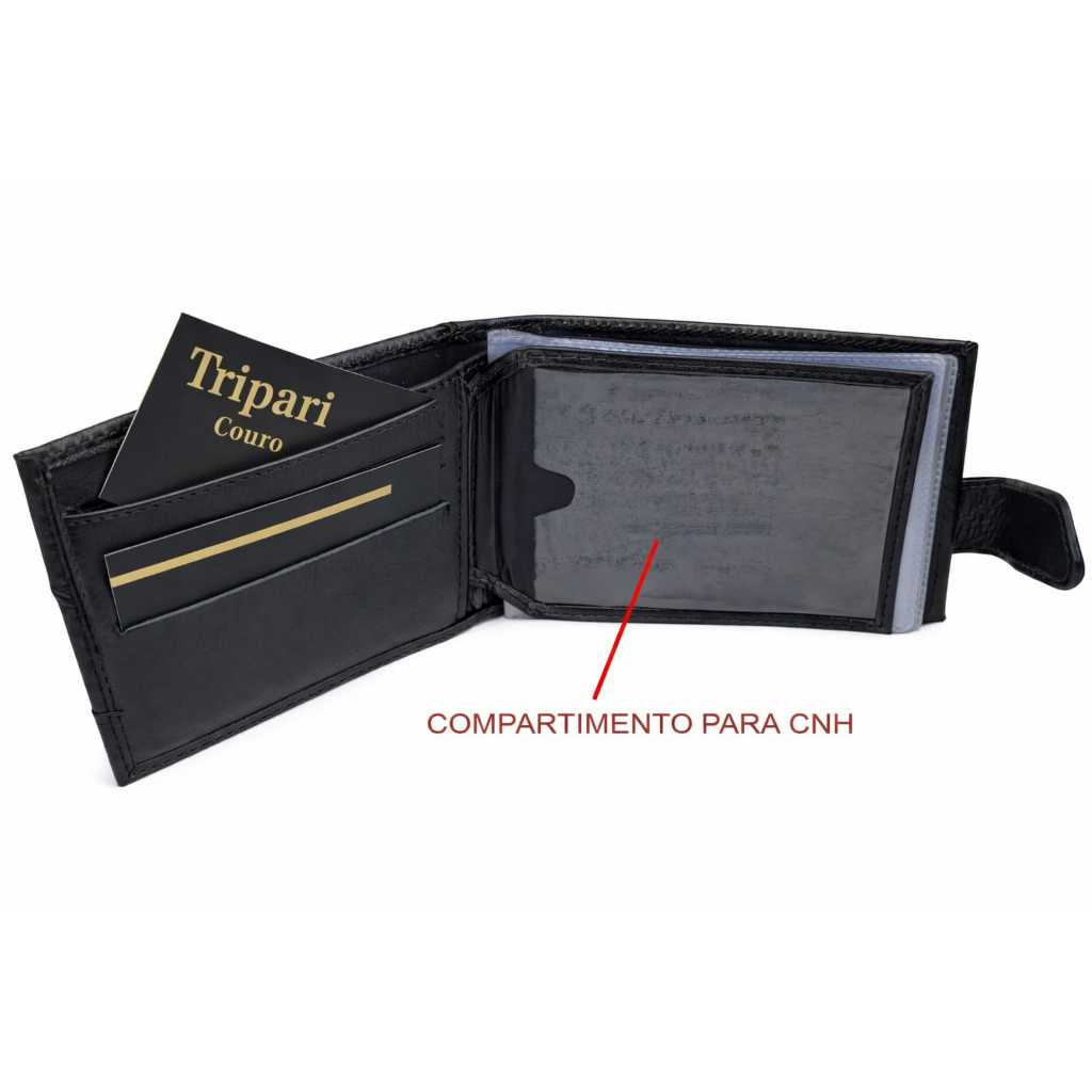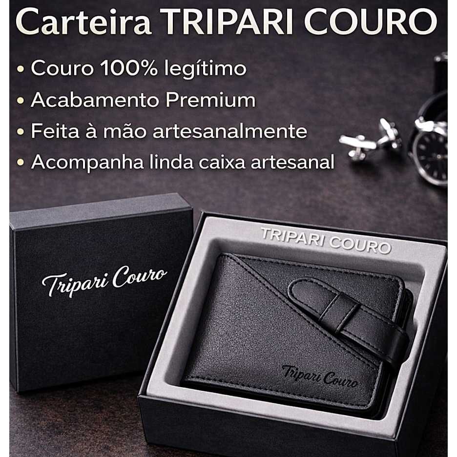 Carteira masculina couro legítimo Tripari couro Fecho cinta porta moedas cartão cnh Caixa presente