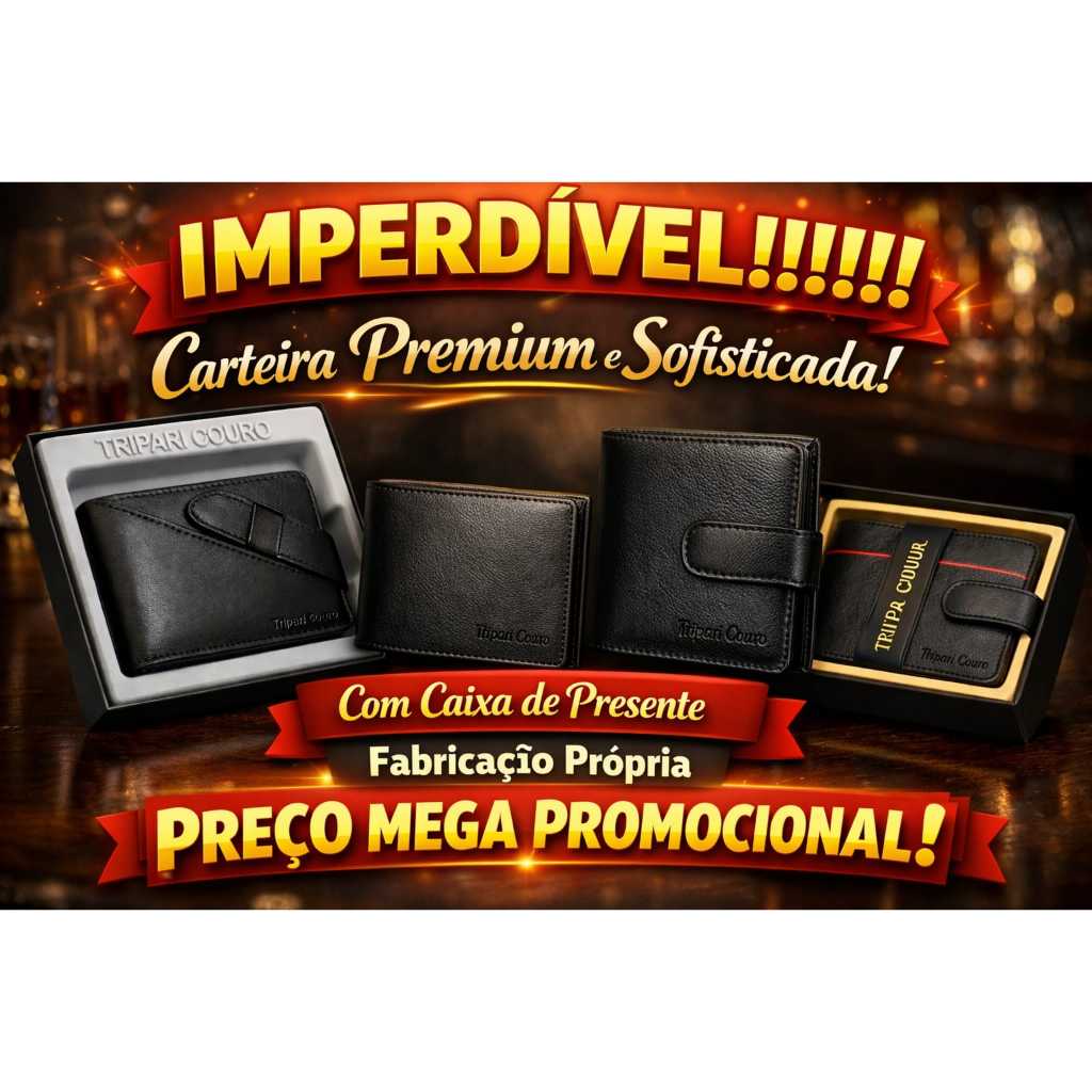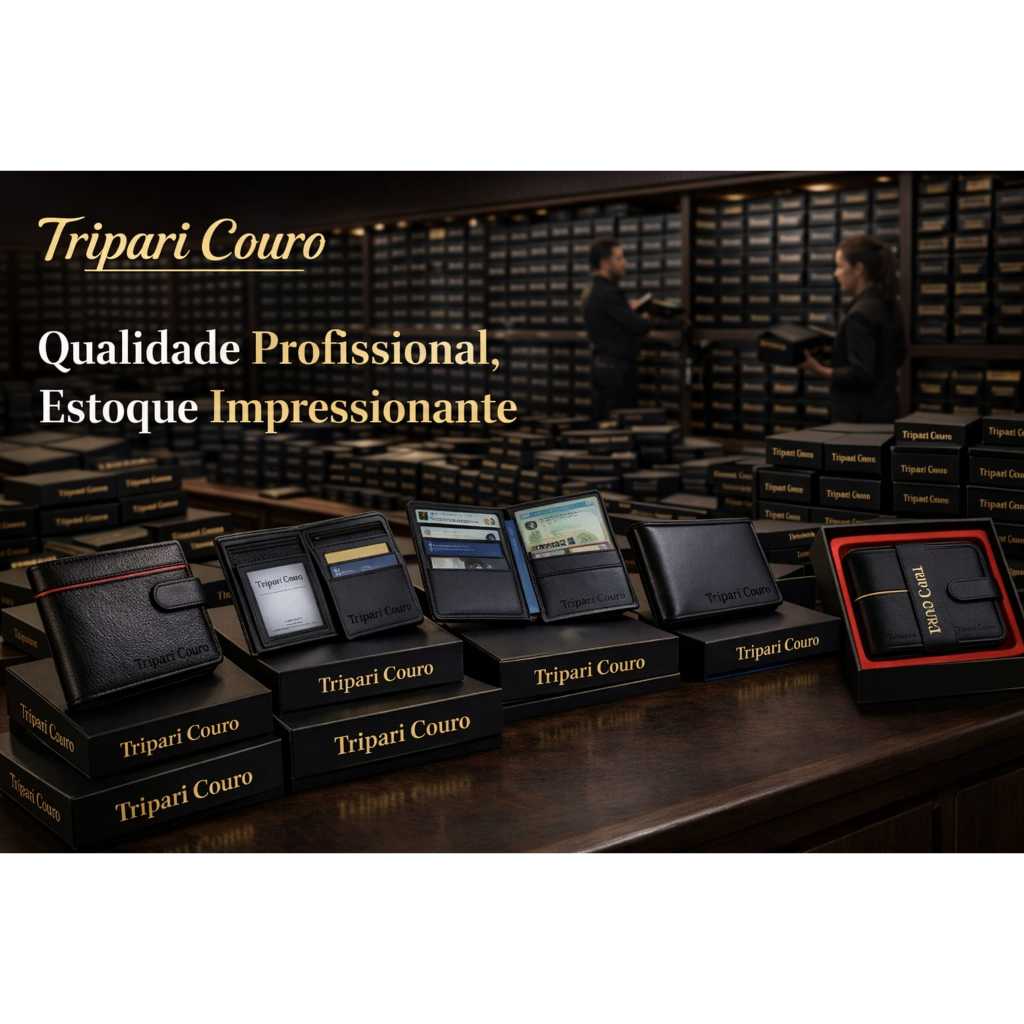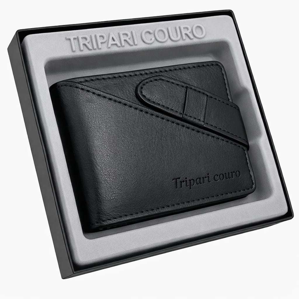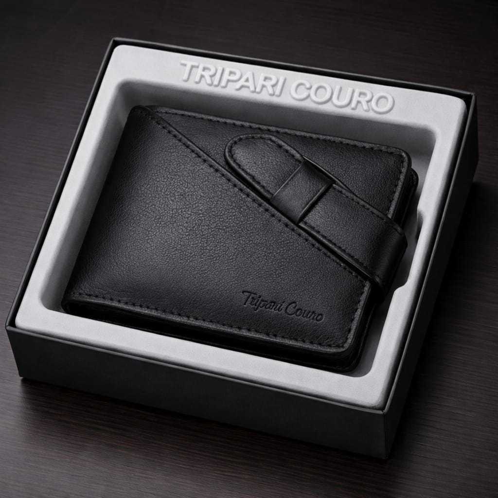 Carteira masculina couro legítimo Tripari couro Fecho cinta porta moedas cartão cnh Caixa presente