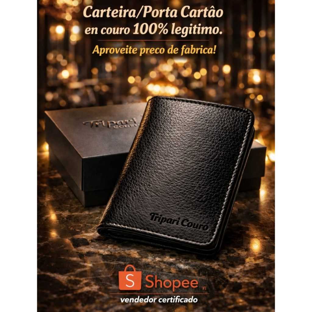 Porta Cartão Carteira Slim Pequena Compacta Couro legítimo Tripari Couro Completa Cédula Cartões Cnh