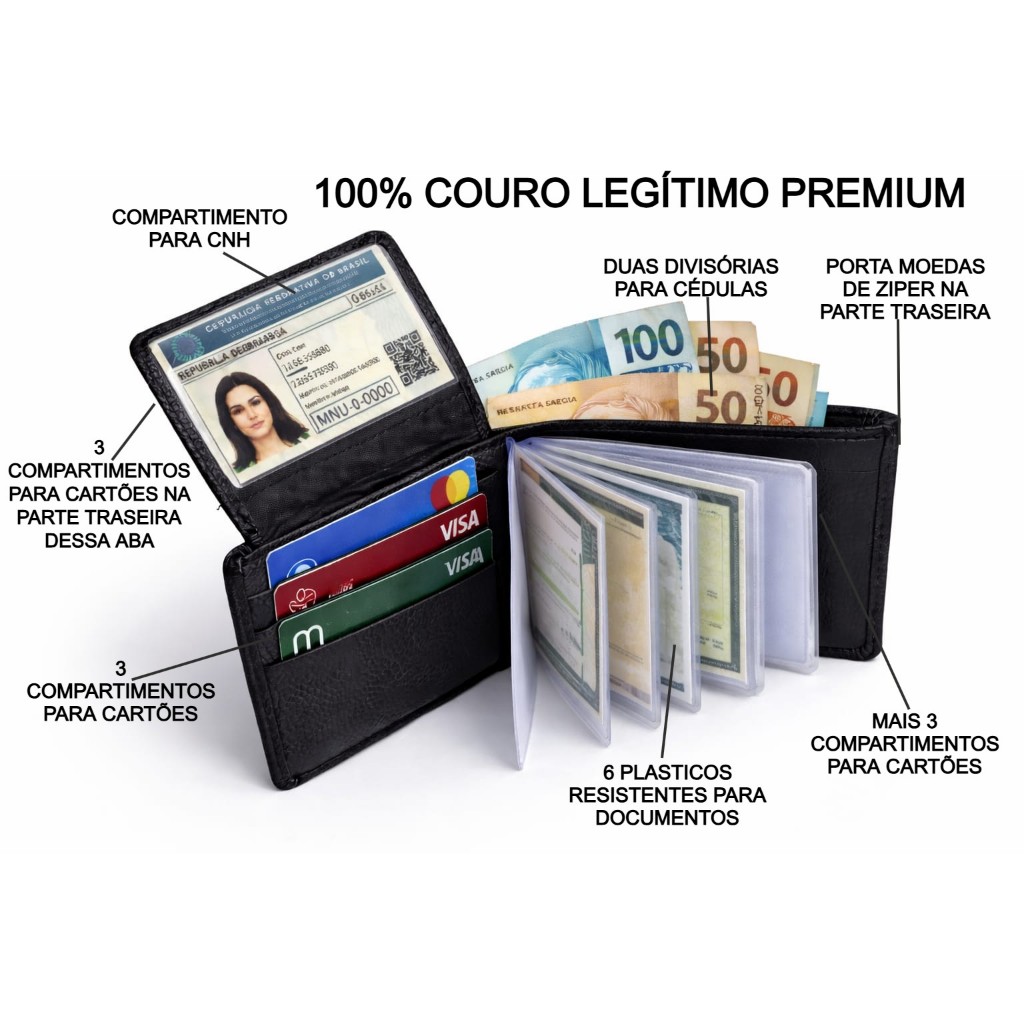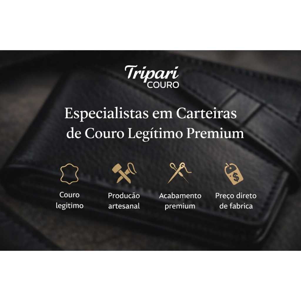 Carteira masculina couro legítimo premium completa luxo porta documentos moedas luxo tripari couro