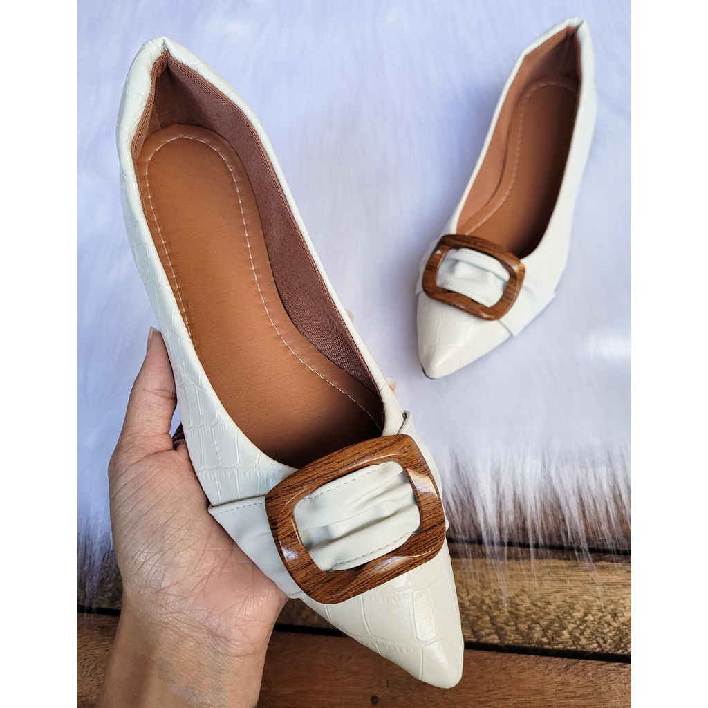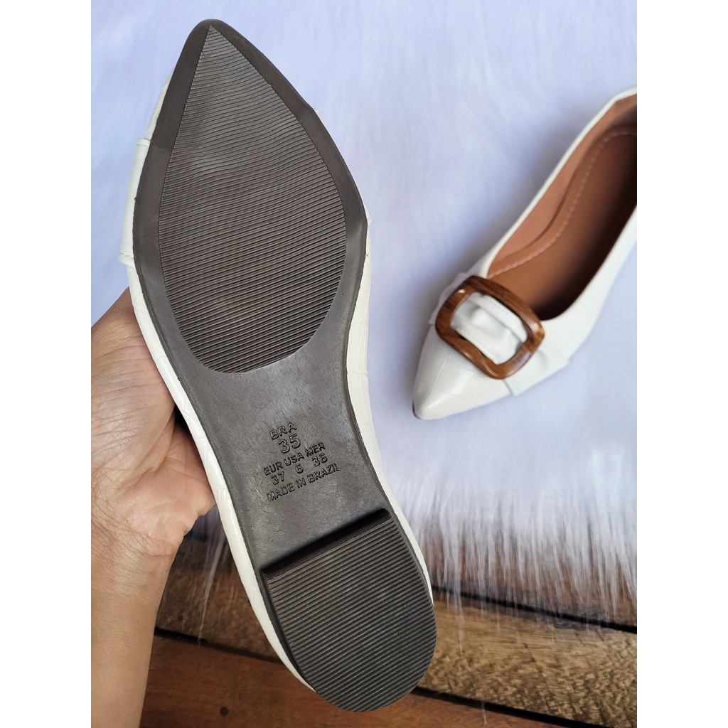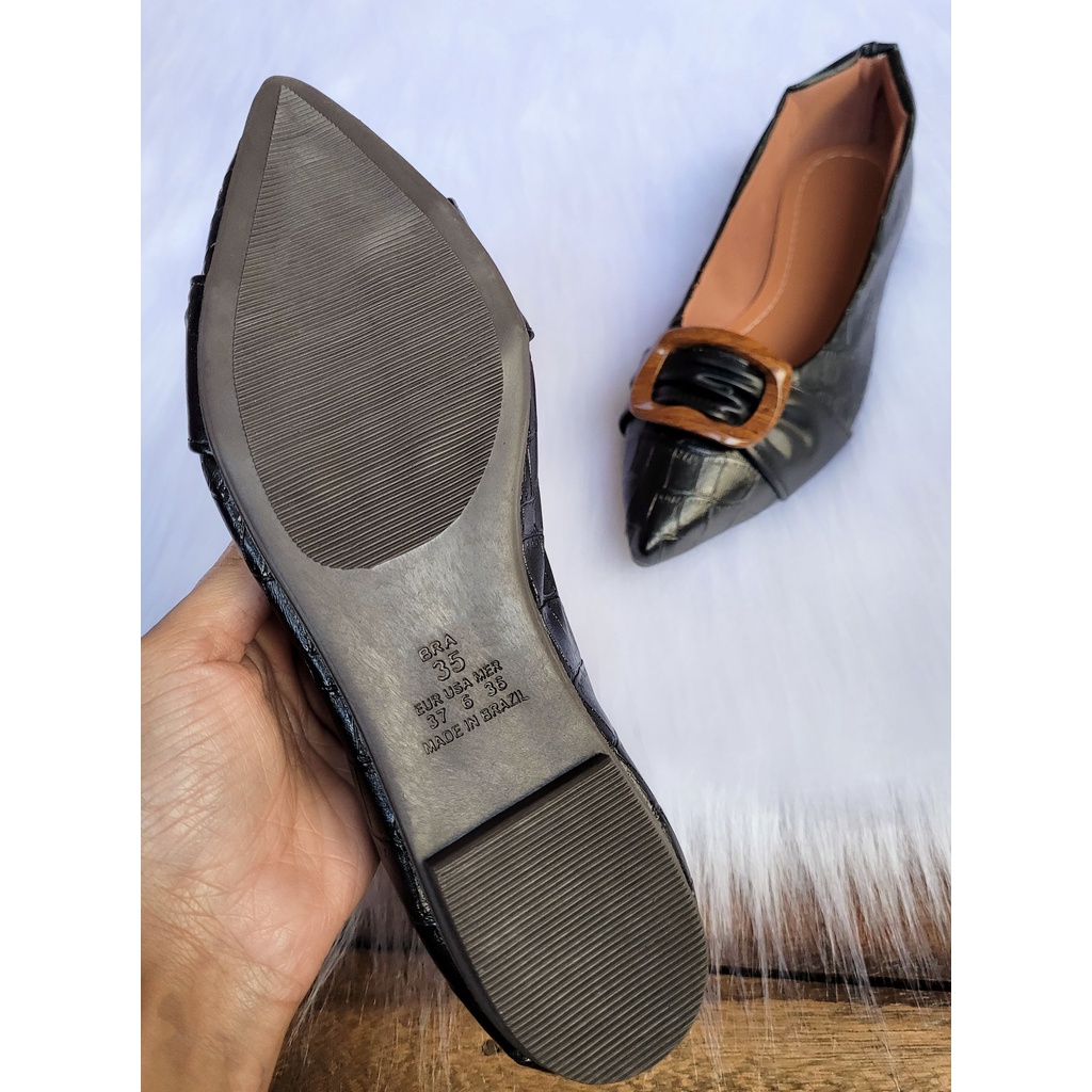 Sapatilha Feminina Bico Fino Preta Com Fivela Confortável Premium Sapato Feminino Casual Sandália Rasteirinha Promoção