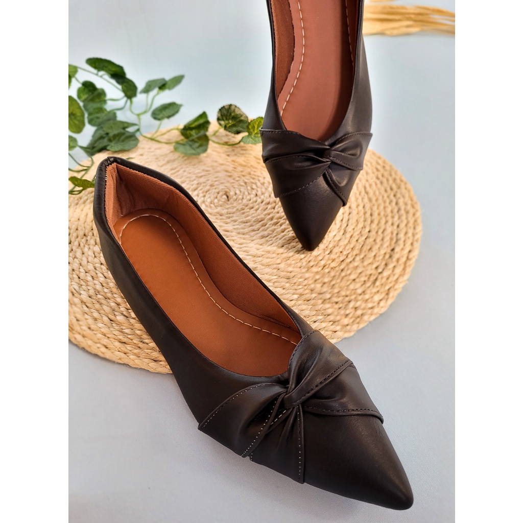 Sapatilha Feminina Bico Fino Sapato Feminino Napa Preta e Nude Rasteirinha Confortável Premium Promoção