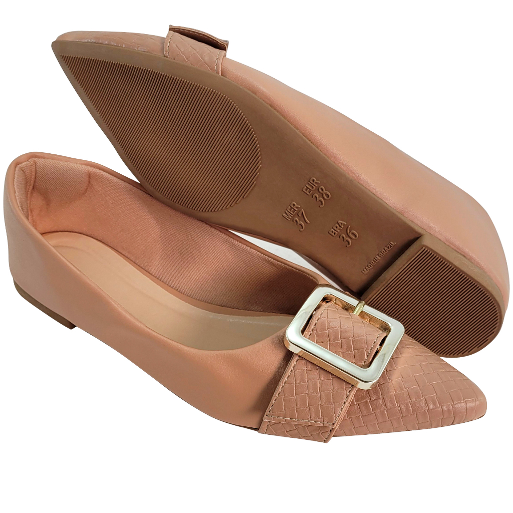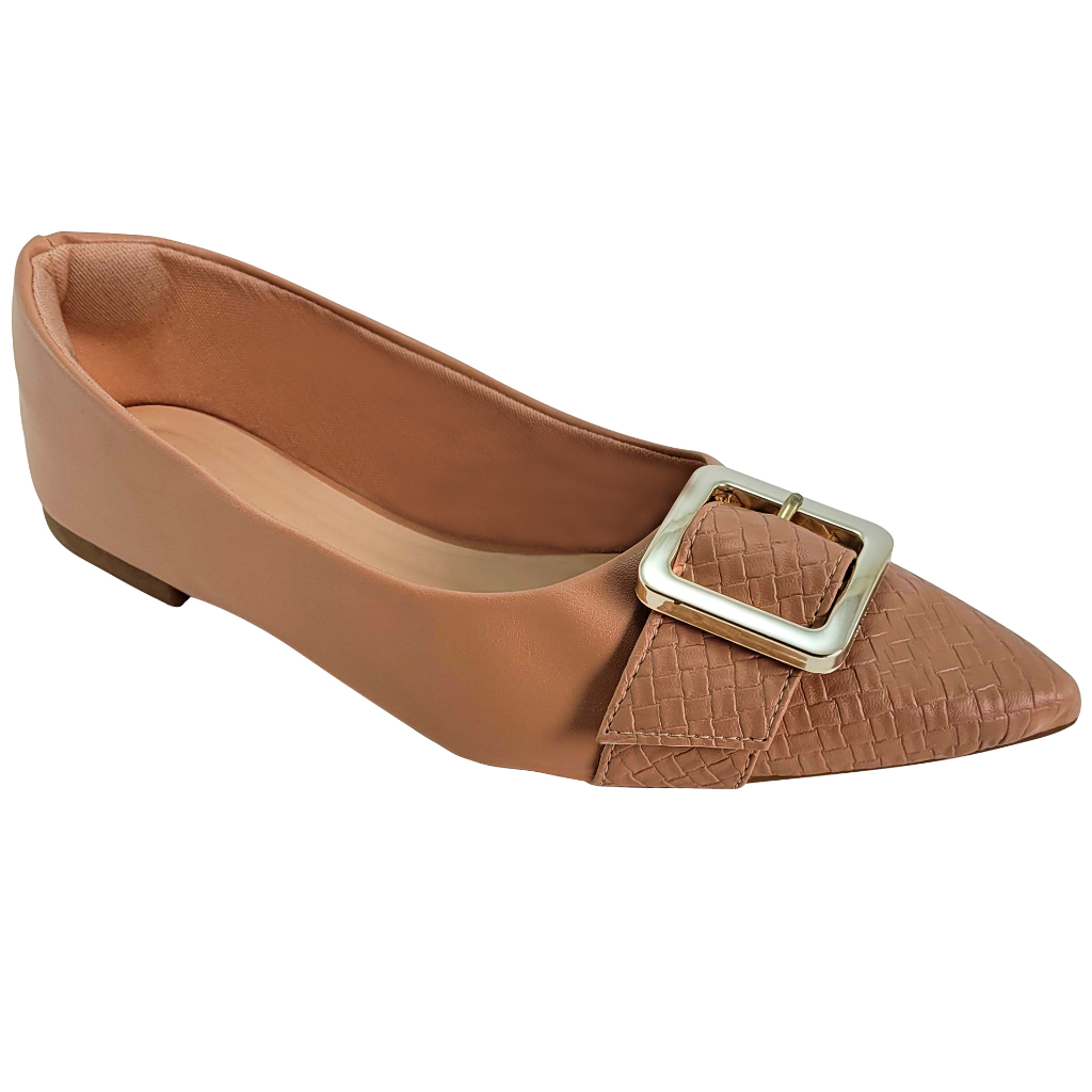 Sapatilha Feminina Bico Fino Com Fivela Confortável Casual Nude Rasteirinha Macia Sandália Feminino